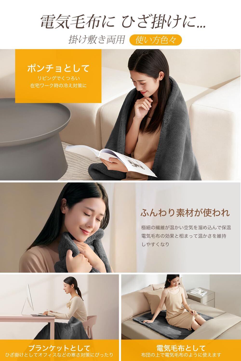 電気毛布 電気ひざ掛け 【LEDディスプレイ表示 3段階温度調節】 電気ブランケット 掛け 敷き 兼用 タイマー 自動オフ ヒーター付き ひざ掛け 肩掛け USBブランケット 洗える 暖房器具 防寒対策 大判 省エネ キャンプ ソロキャンプ 車中泊 テント泊 アウトドア オフィス (グレー)