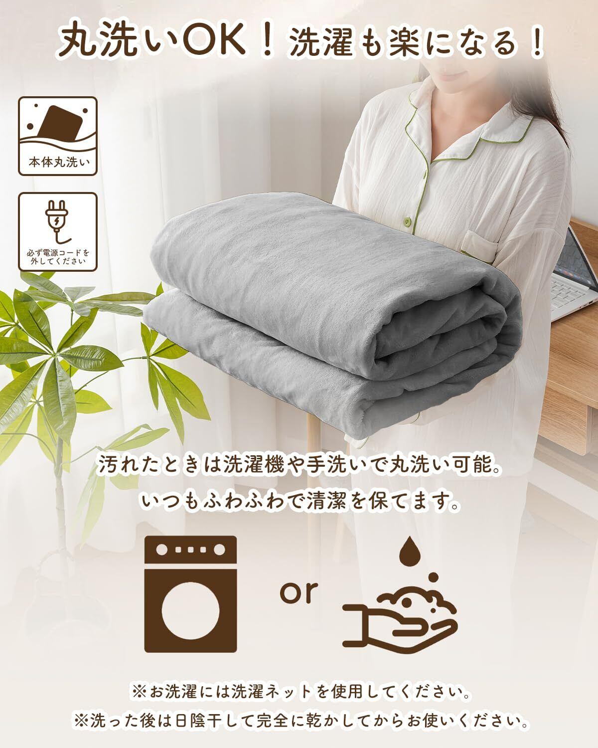 【ダニ退治機能・抗菌除臭・丸洗いOK】洗濯機で丸洗いまた脱水することも可能なので、家事の時間を減らし、楽にお手入れができてとても便利です。【簡単にダニ退治ができる】電気毛布をポリ袋に入れて上から布団をかけ、「強(5-6)」で2-3時間程通電して、これだけで99.9%のダニを退治できます。