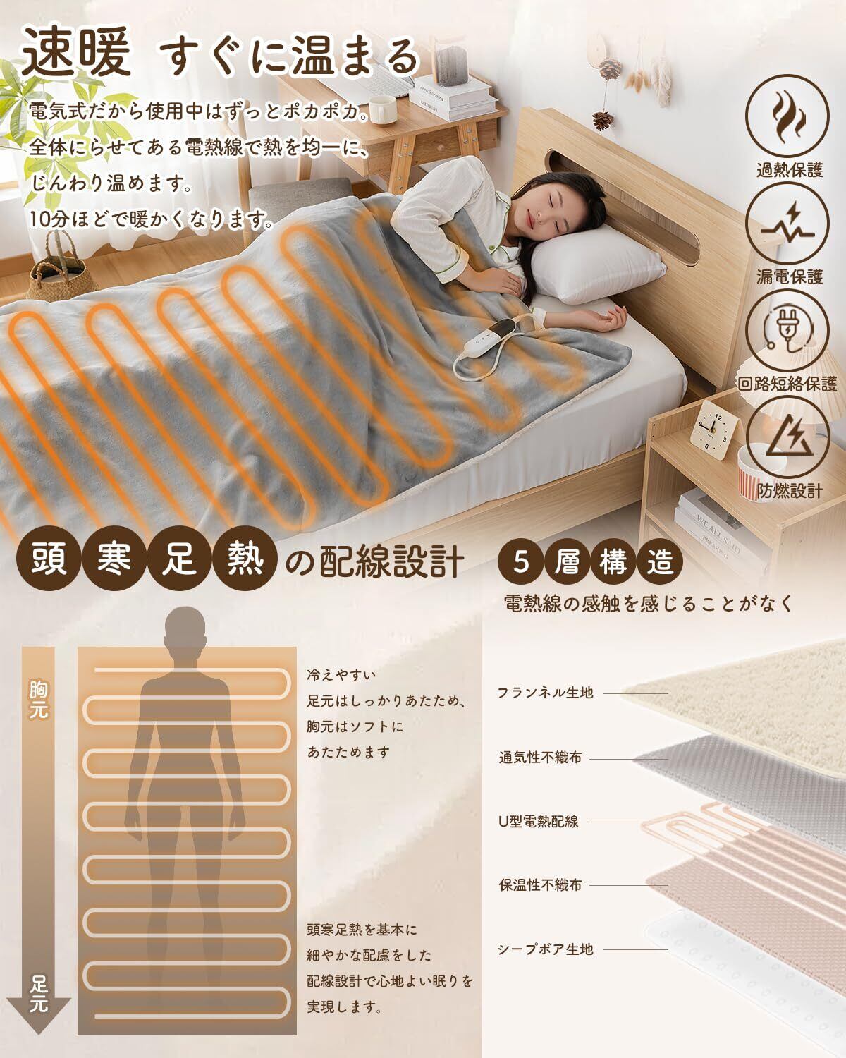 特徴 速暖·頭寒足熱配線·タイマー機能·温度調節