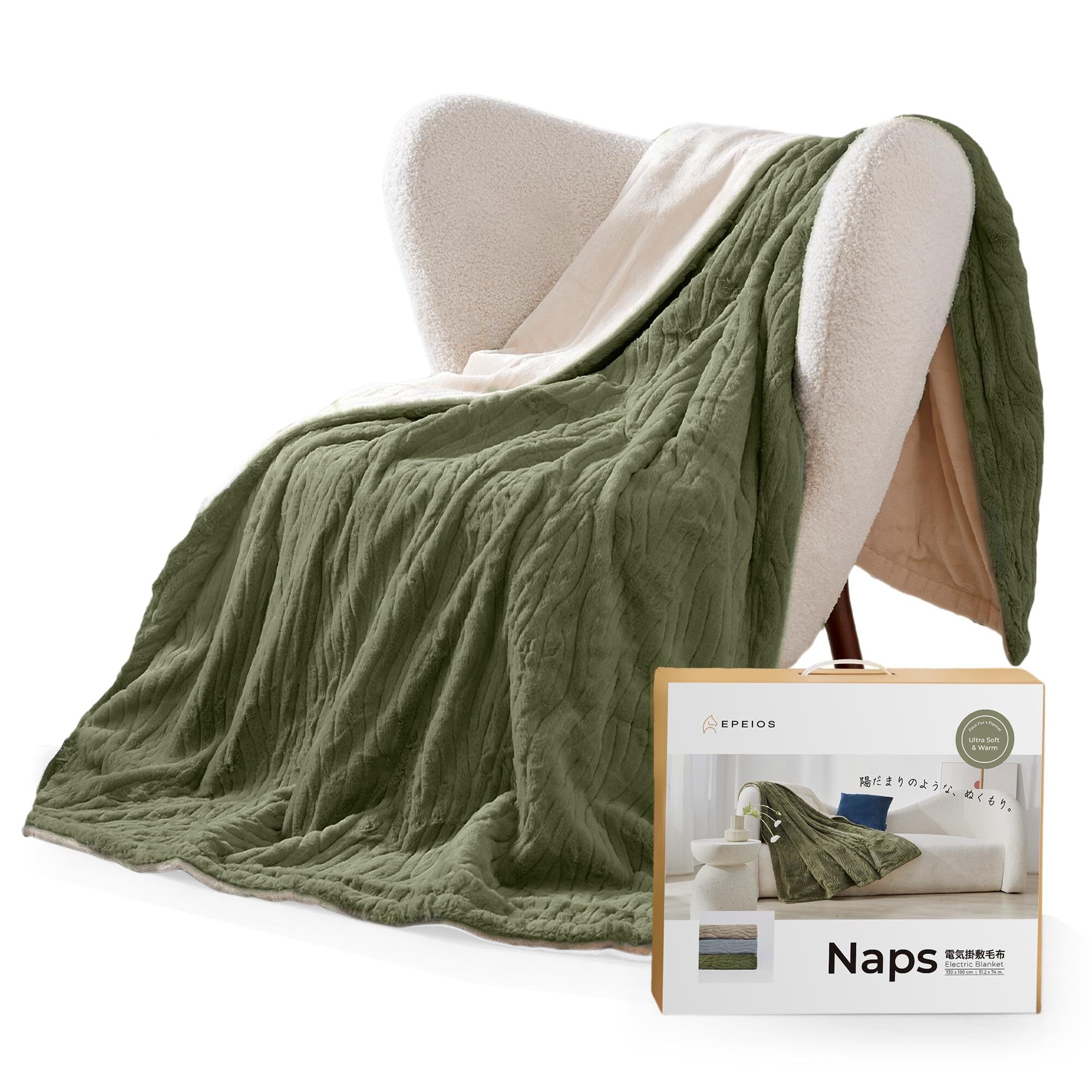 【心地良い質感・優れた保温性】 Epeios Naps電気毛布は、表地と裏地になめらかでやわらかな肌触りのぬいぐるみ生地で、高級感がある触り心地、体の上から掛けて暖かくに包まれます。空気を溜め込み熱を逃さない長毛素材のため、保温性にも優れています。