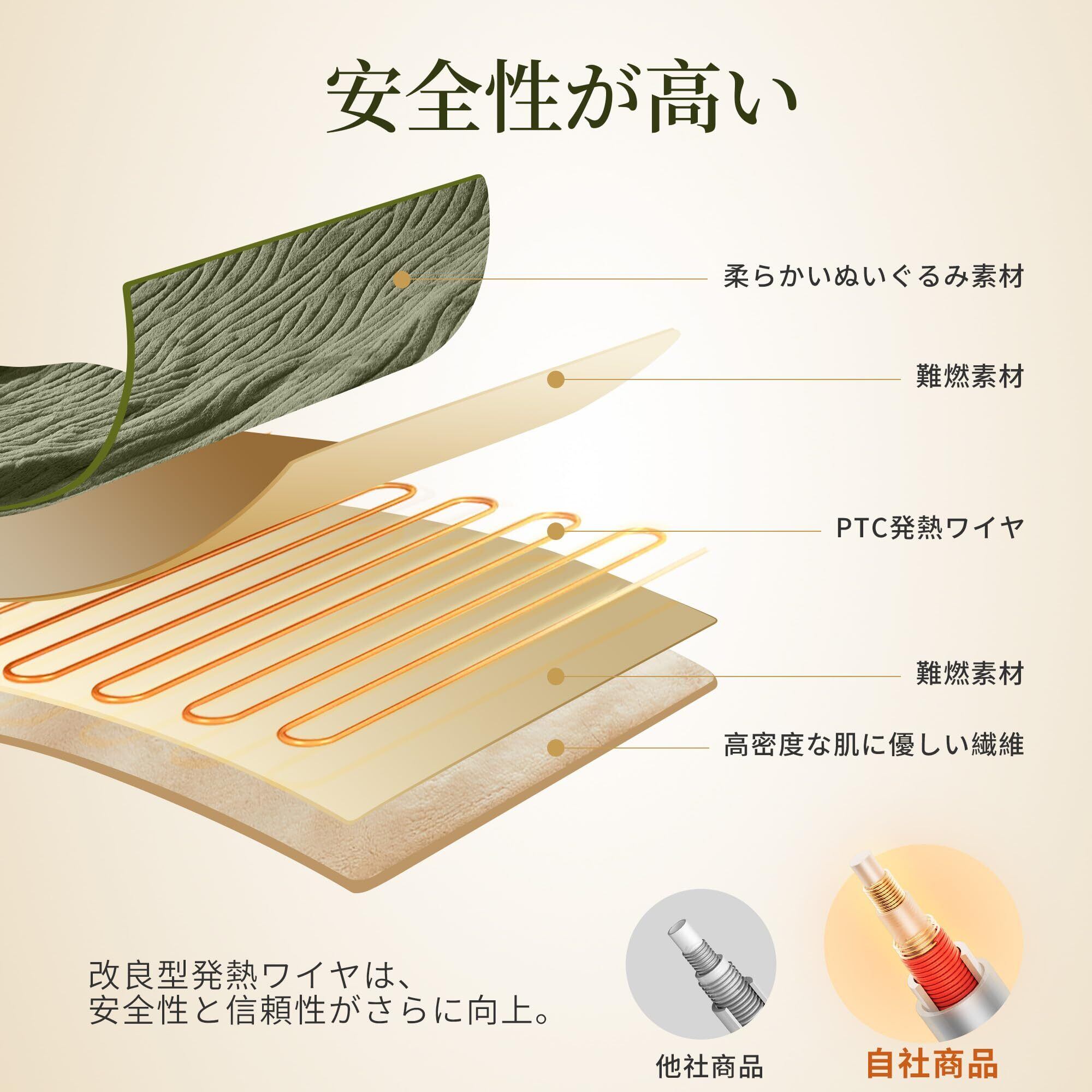 【安全性高い・UL認証済み加熱ワイヤー採用・PSE認証済み】エペイオス電気毛布はPSE認証取得済み。五層の安全構造及び過熱保護機能や均一加熱などにより、安心して心地よい睡眠をサポートします。