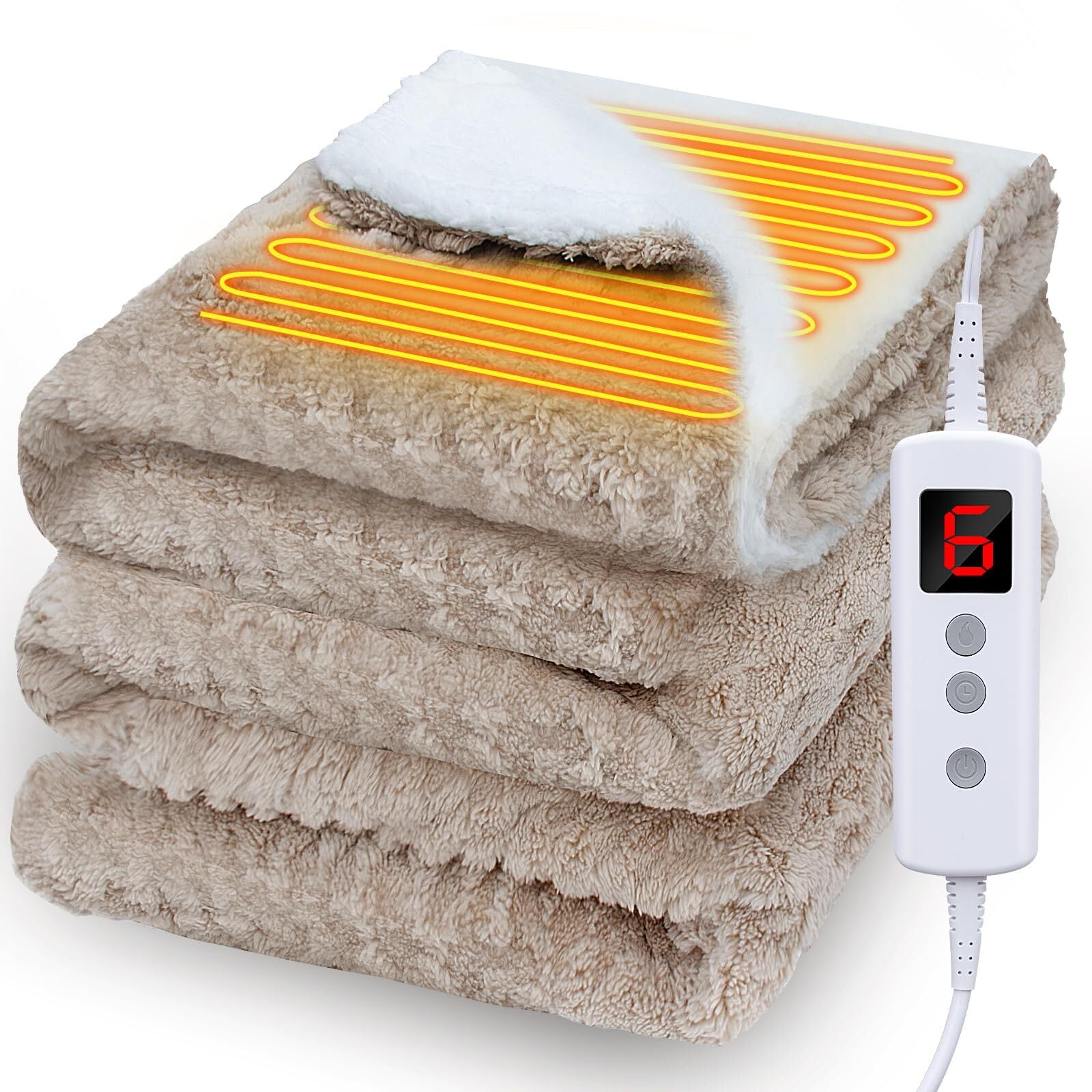 SIWENGDE 電気毛布 掛け敷き兼用 170*130cm 電気ひざ掛け 電気ブランケット ふかふか ソファ ブランケット 6段階温度調整 5つタイマー機能 敷きかけ兼用 3分速暖 ふわふわ 肩掛け 膝掛け ヒーターブランケット シングル コントローラ付きダニ退治 過熱保護 抗菌 防臭 冷え予防 防寒対策 冷房対策 暖房器具 PSE認証済み(170*130cm)