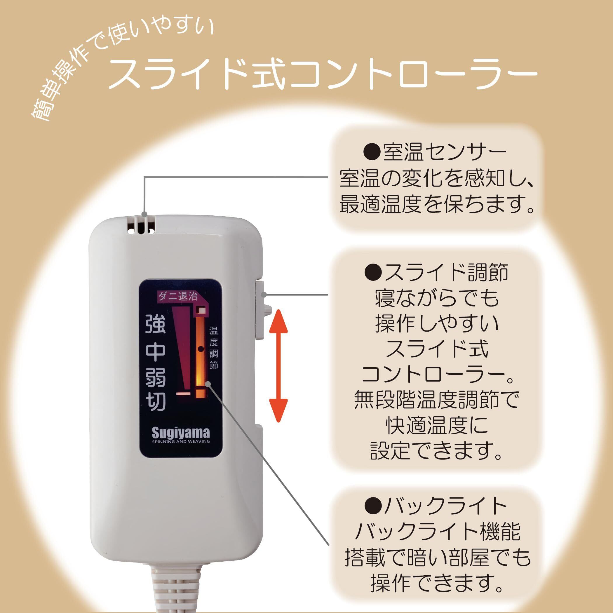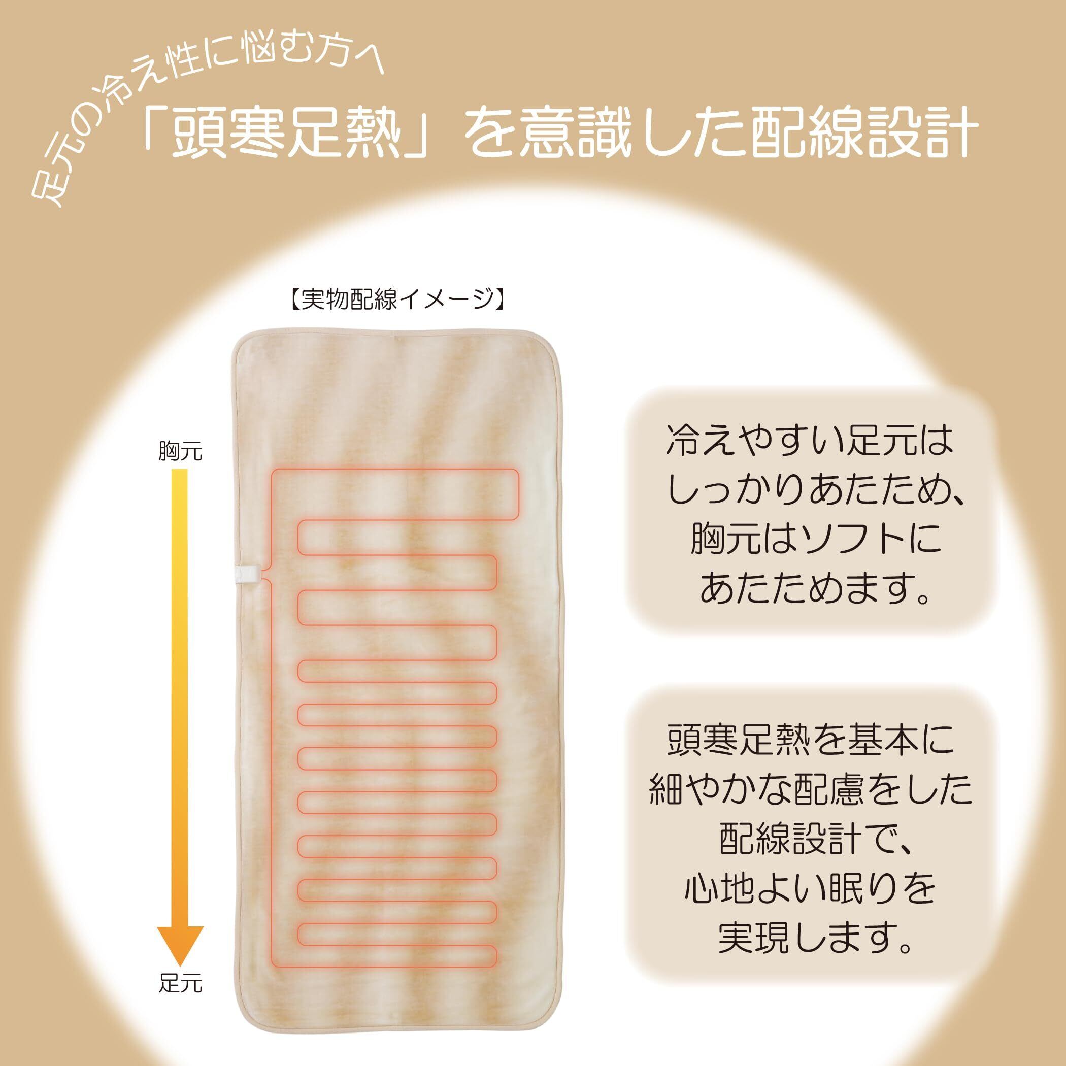表面アクリル100%、頭寒足熱配線、室温センサー、抗菌防臭加工、ダニ退治機能、洗える毛布