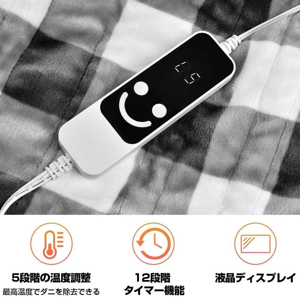 電気毛布 掛け 敷き 190×130cm 大きいサイズ チェック毛布 電気ひざ掛け 速暖 厚手生地 毛玉なし 電気ブランケット 5段階温度調整 12段階タイマー 省エネ 丸洗い 防寒対策 車中泊 キャンプ 暖房器具 PSE認証済み