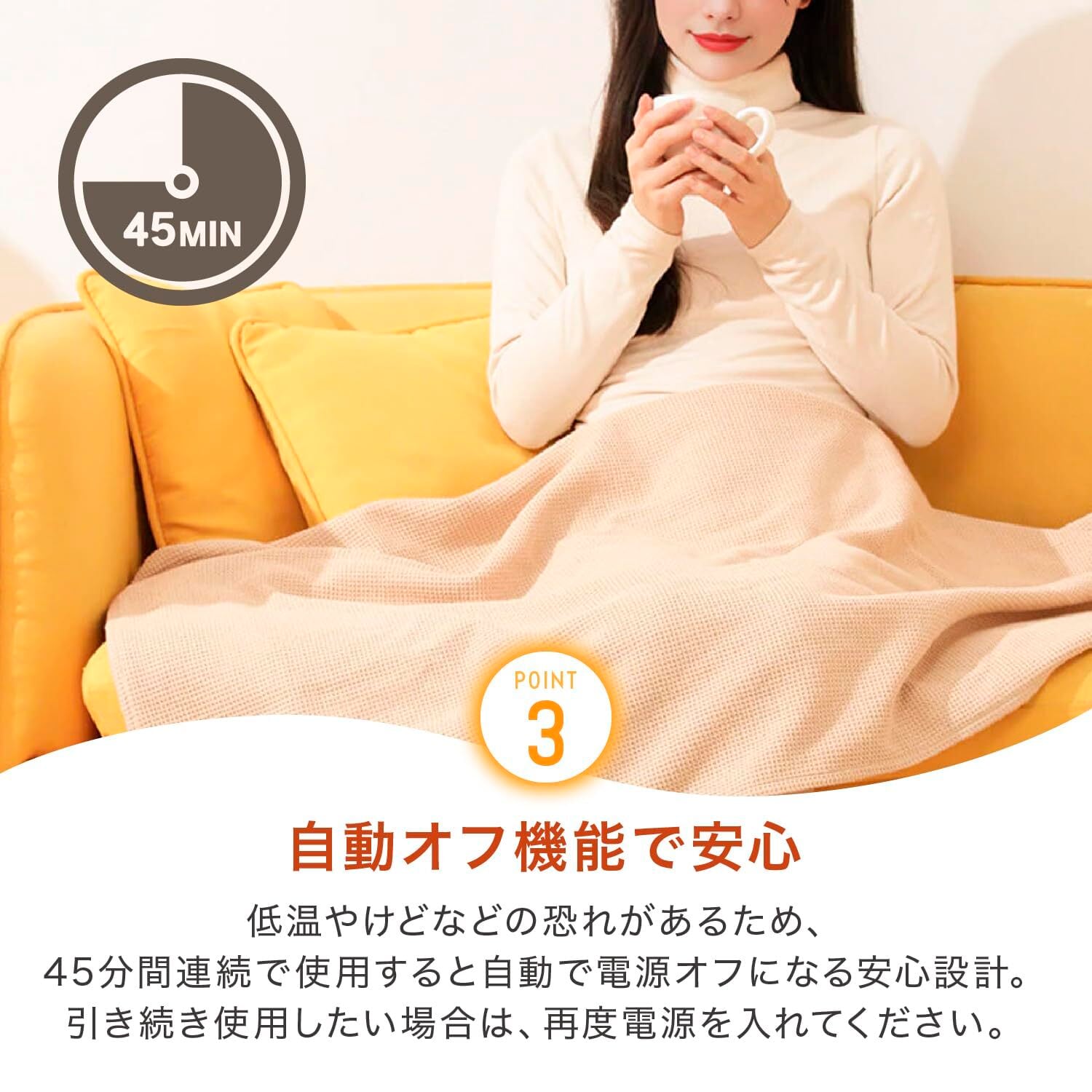 【安全設計で安心して長時間使用可能】過熱防止機能を備えたスマート温度制御システムを内蔵。長時間の使用でも安全にお使いいただけます。低電圧USB給電で省エネ設計なので、自宅でのリラックスタイム、仕事や勉強中、夜間の休憩時など、いつでも安心して暖かさを楽しめます。