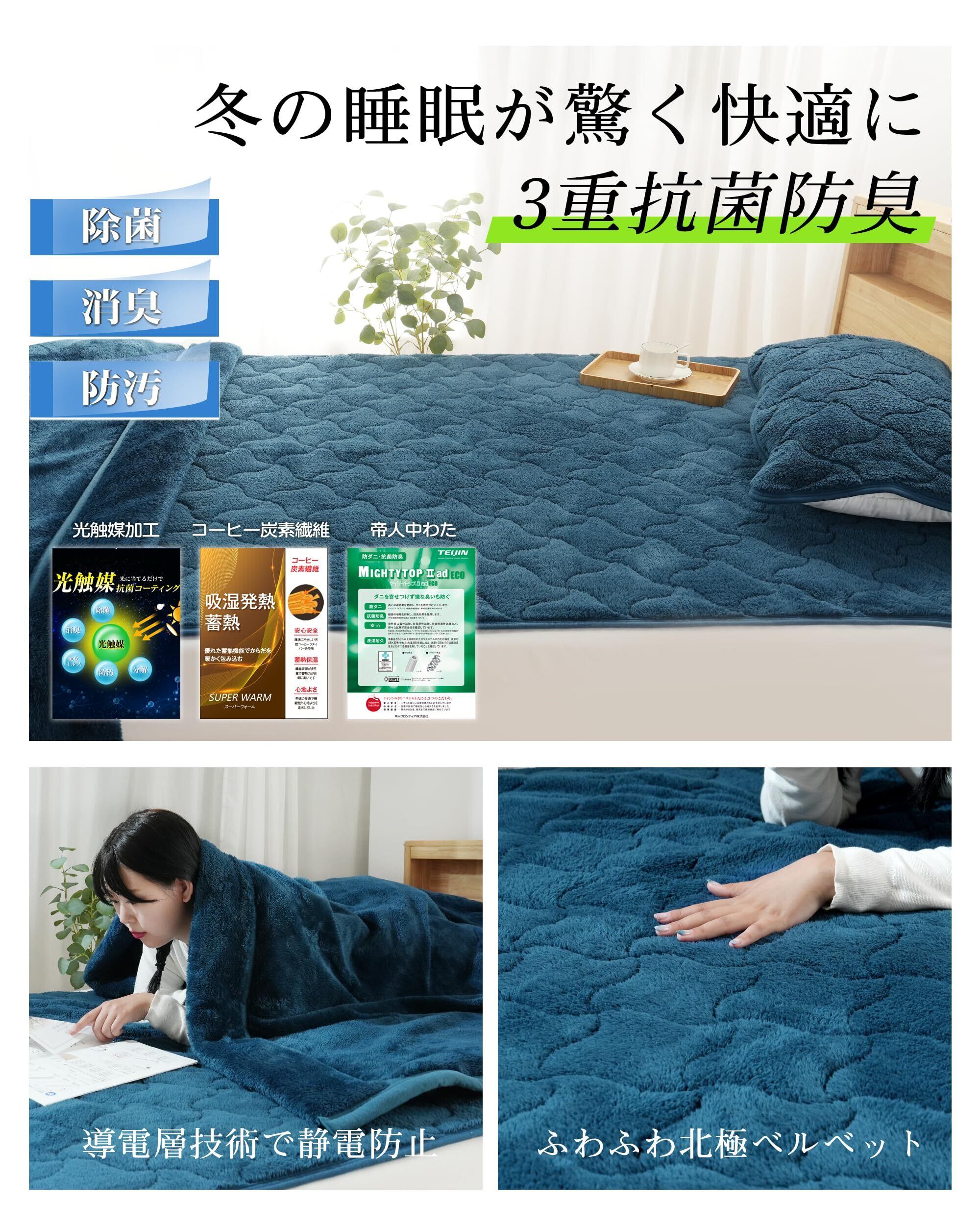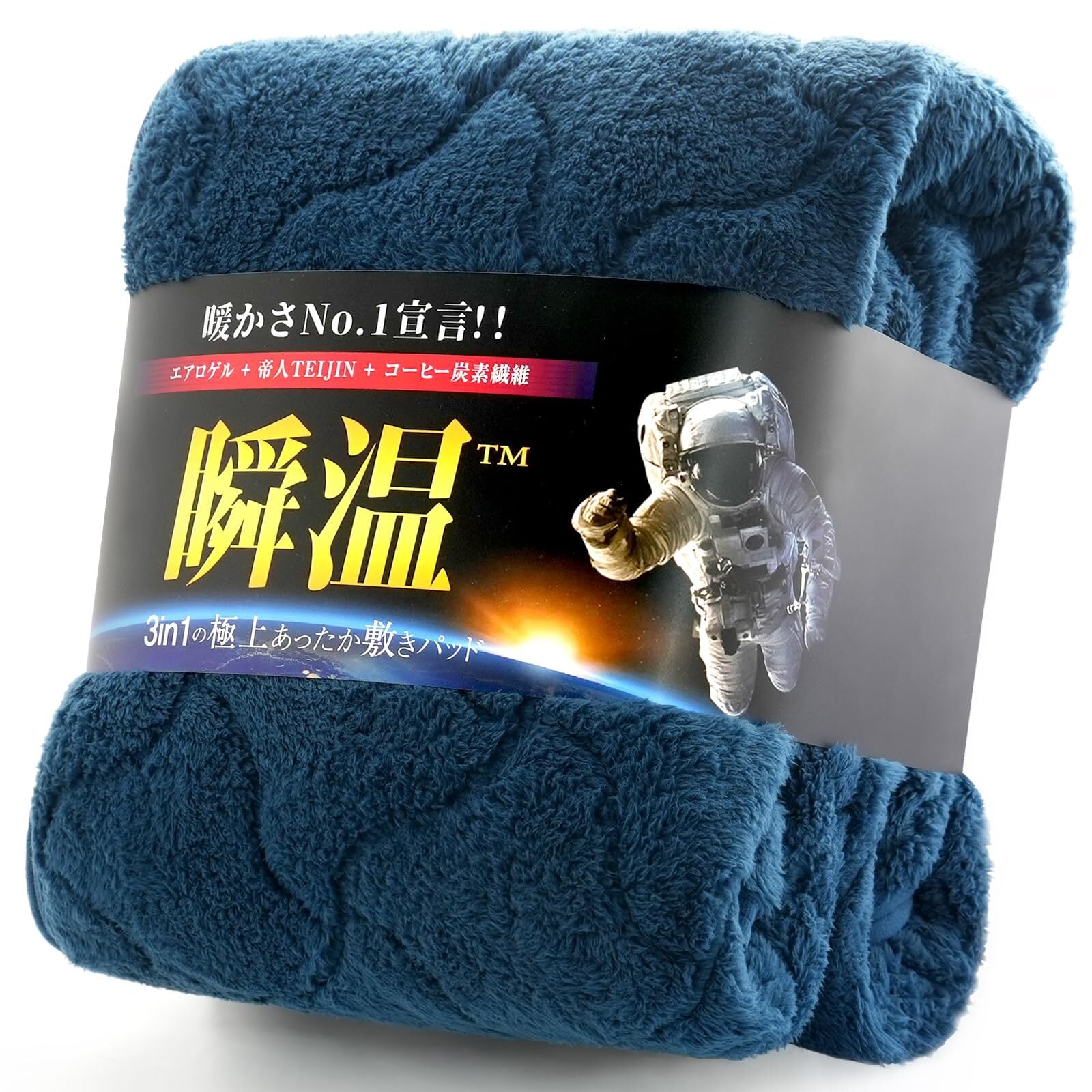IMA HOME 【エアロゲル×アルミシートW断熱】敷きパッド シングル 冬 6重保温 ふわふわボア しきぱっと 3重抗菌防臭防ダニ 吸湿発熱 W静電気防止 ベッドパッド あったか敷きパッド 冬用敷きパッド 宇宙服素材 帝人中綿 次世代コーヒー炭素繊維 洗える 100×205cm ネイビー | kki