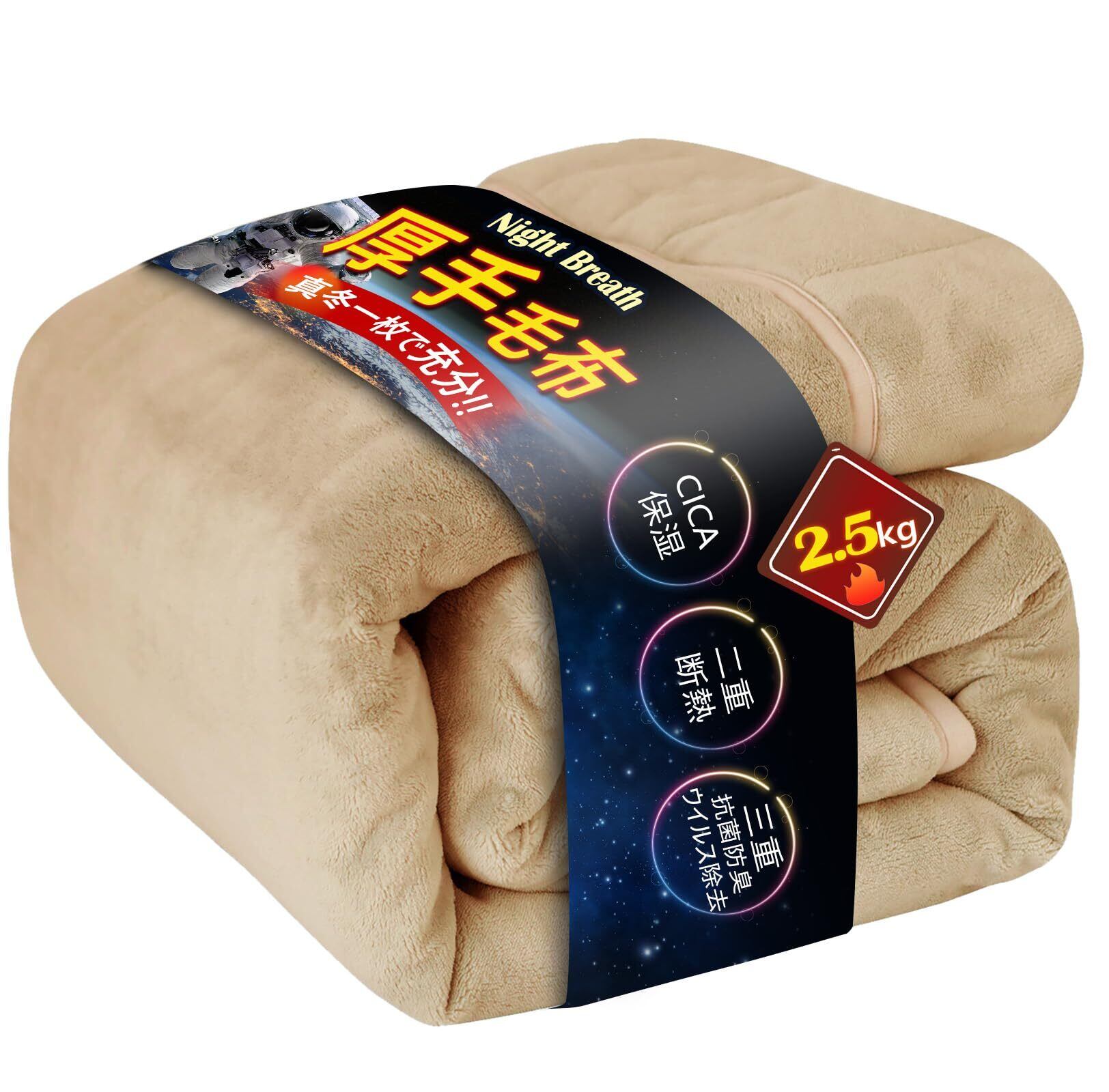 【極厚極上暖・帝人TEIJIN中綿】毛布 シングル 厚手 【アルミシート+エアロゲル断熱】6層構造 CICA保湿加工 掛け布団 掛けふとん 冬用 帝人TEIJIN 光触媒 抗菌防臭消臭 襟付き フランネル 超極細繊維 合わせ保温 軽量 洗える 毛抜けない 静電気防止 140x200cm ベージュ | kki