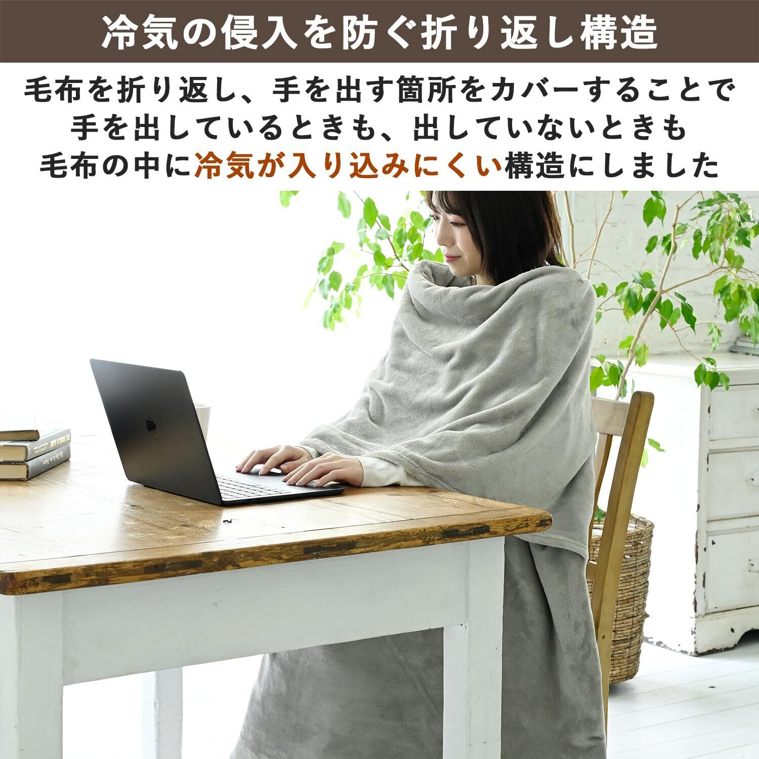●毛布にすっぽり入ったまま両手が自由に使えるハンズフリータイプ。
