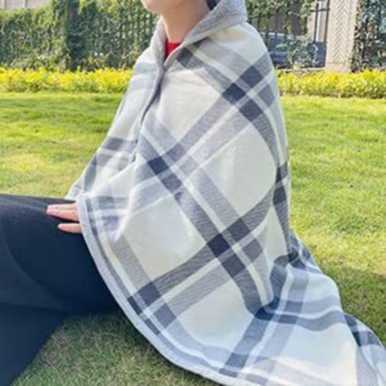 【多機能なブランケット】サイズ:100 × 140cm (±5cm)、下半身をすっぽりと覆えます、肩掛けとしても使。2種類の色の選択:オフホワイト、青い。おしゃれできれいです、男女兼用のタイプで。手洗いまたは、洗濯機で洗えます。