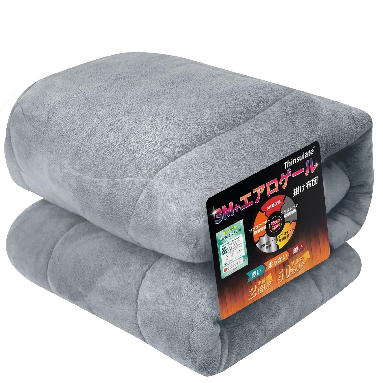 「極寒対応・帝人TEIJIN中綿入り」掛け布団 エアロゲルx3Mシンサレート™超断熱 冬布団 かけ布団 接触温感 4大消臭 吸湿発熱 柔らか 丸洗い 軽量 あったか 蓄熱保温 断熱 アルミシート入り フランネル 静電気防止 防ダニ加工 蒸れにくい 日本企画 シングル 140*200cm グレー BESTONEPLUS | kki