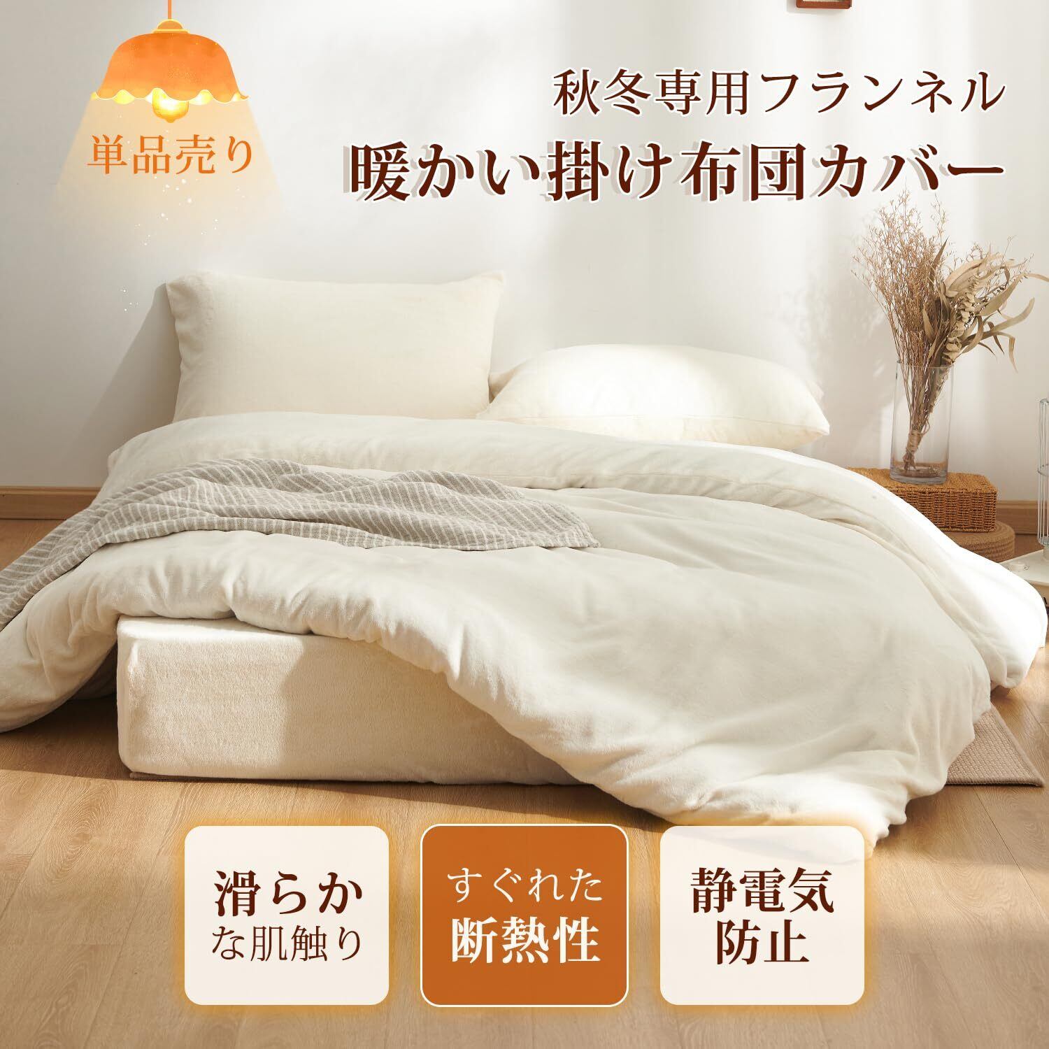 クモリ(Kumori) 掛け布団カバー セミダブル 暖かい フランネル 「極暖シリーズ」 持続温感 冬用 マイクロファイバー 吸湿発熱 なめらか 毛布タッチ 静電気防止 防寒対策 単品売り 掛けふとんカバー 洗える 170X210cm アイボリー | kki