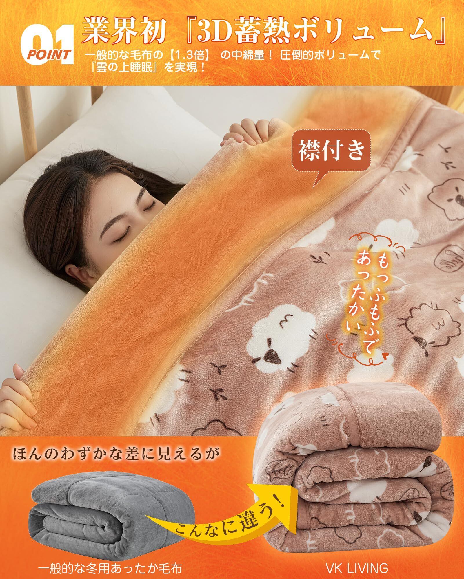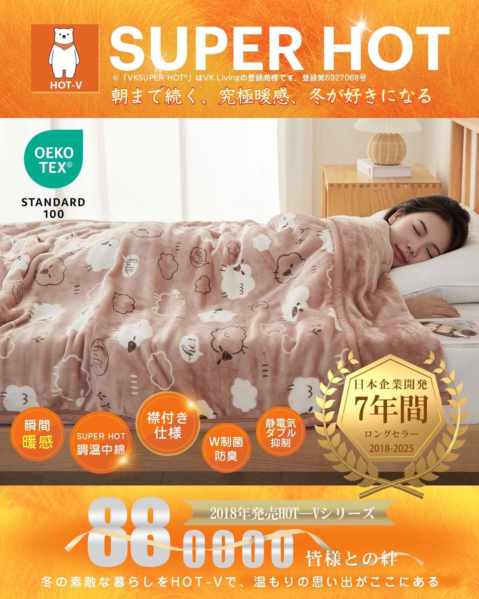 【未来の魔法瓶毛布・快適な温度が長~く続く!】①魔法瓶効果かつ瞬間超発熱の「扁平糸」超高密度フランネル+②VK Livingが独自に開発したSUPER HOT調温中綿+③保湿加工を施したフランネルで、2025年の新技術により創造したこだわりの魔法瓶毛布です。秋から春まで長期間使用でき、季節の変わり目にも重宝します。