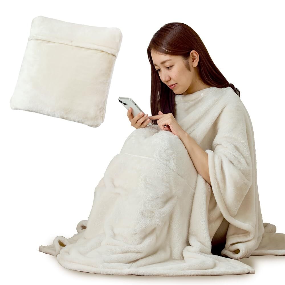 アイリスオーヤマ 3WAYマルチ毛布 ぽかぽかとじんわりあたたかい 毛布で節電対策を 吸湿発熱 静電気防止 そのまま毛布として かぶってポンチョとして 畳んでクッションとして お家時間にもアウトドア時にも 丸洗いOK アイボリー M-3M | kki