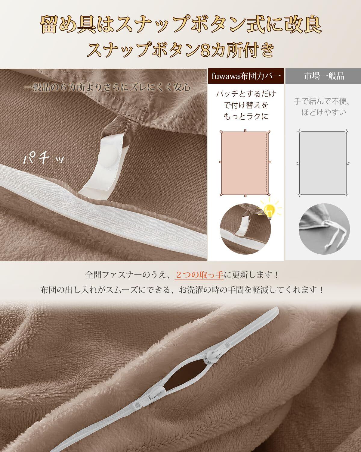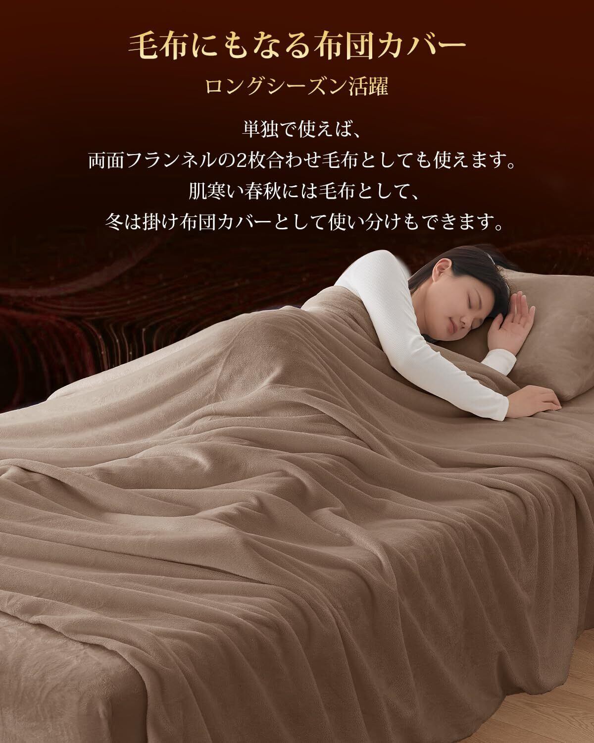 fuwawa 掛け布団カバー セミダブル 冬 羽毛布団カバー 毛布カバー フランネル 暖かい 厚手『プラス5℃蓄熱保温』 毛布にもなる掛け布団カバー スナップボタン8箇所&ダブルファスナー 【CICA保湿加工・防ダニ99.9%・エッコテックス認定】静電気防止 抗菌防臭 洗える 速乾 全開ファスナー おしゃれ 防寒対策 (セミダブル・170×210cm モカ)