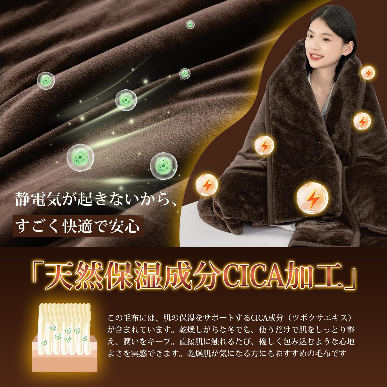 HARUMIN シンサレート 毛布 厚手【中綿増量】 冬用 シングル 掛け毛布 遠赤外線繊維 CICA保湿 洗える 四層構造 2枚合わせ 襟付き フランネル毛布 マイクロファイバー 超極細繊維 暖かい 軽量 ブランケット 断熱素材 静電気防止 吸湿発熱 140×200cm ブラウン | kki