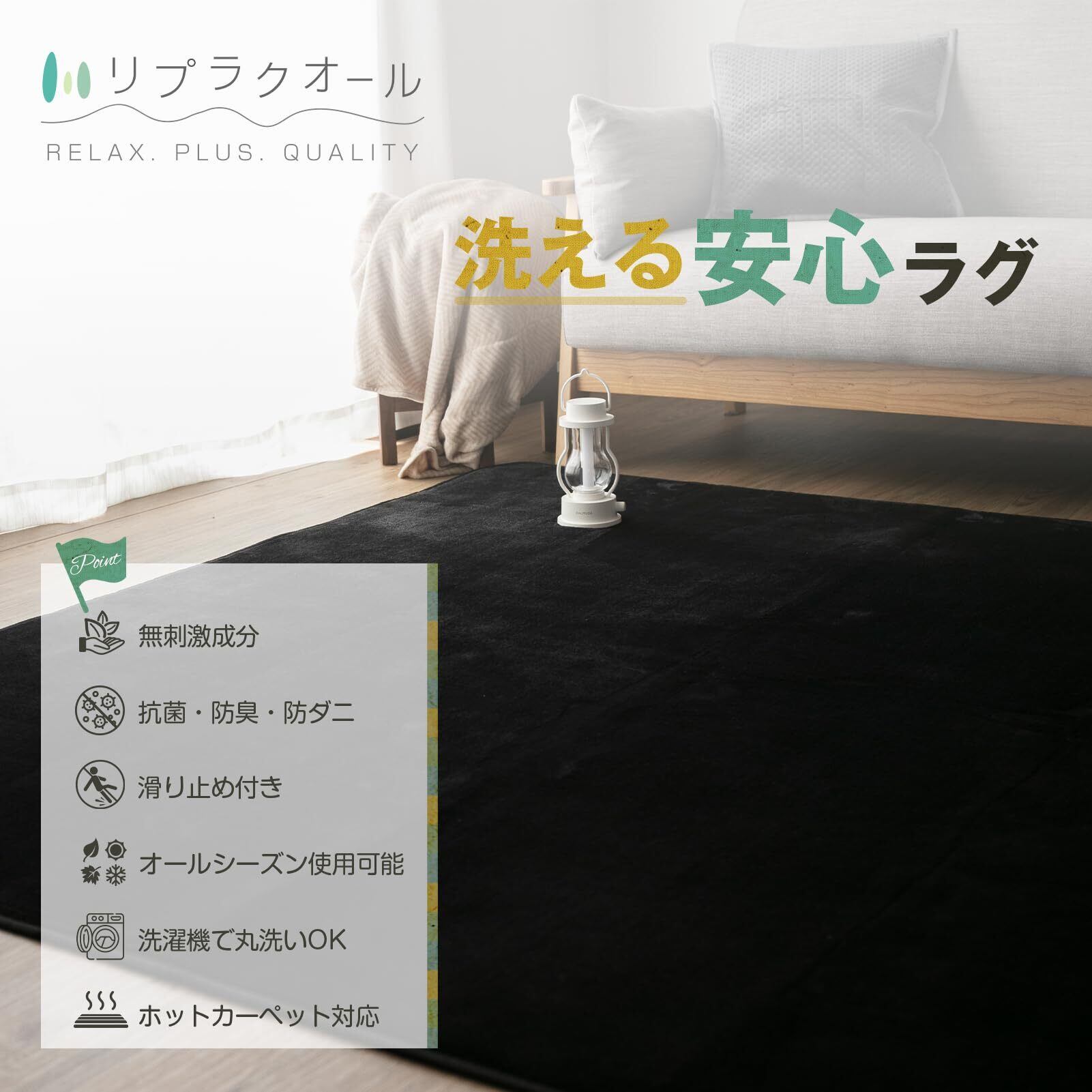 リプラクオール カーペット ラグ 絨毯 ラグマット 135×185cm(約1.5畳) 洗える 滑り止め 抗菌 防臭 防ダニ オールシーズン ホットカーペット対応 簡単に掃除 フランネル ブラック