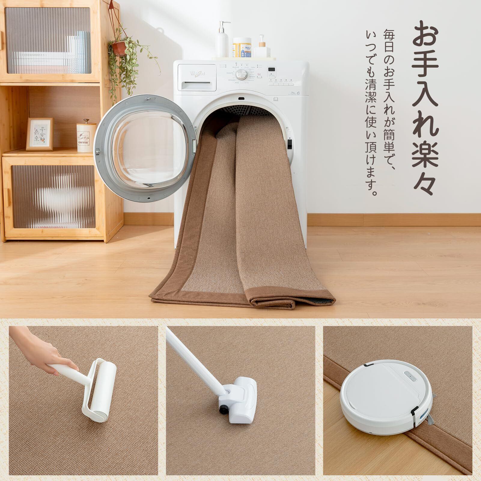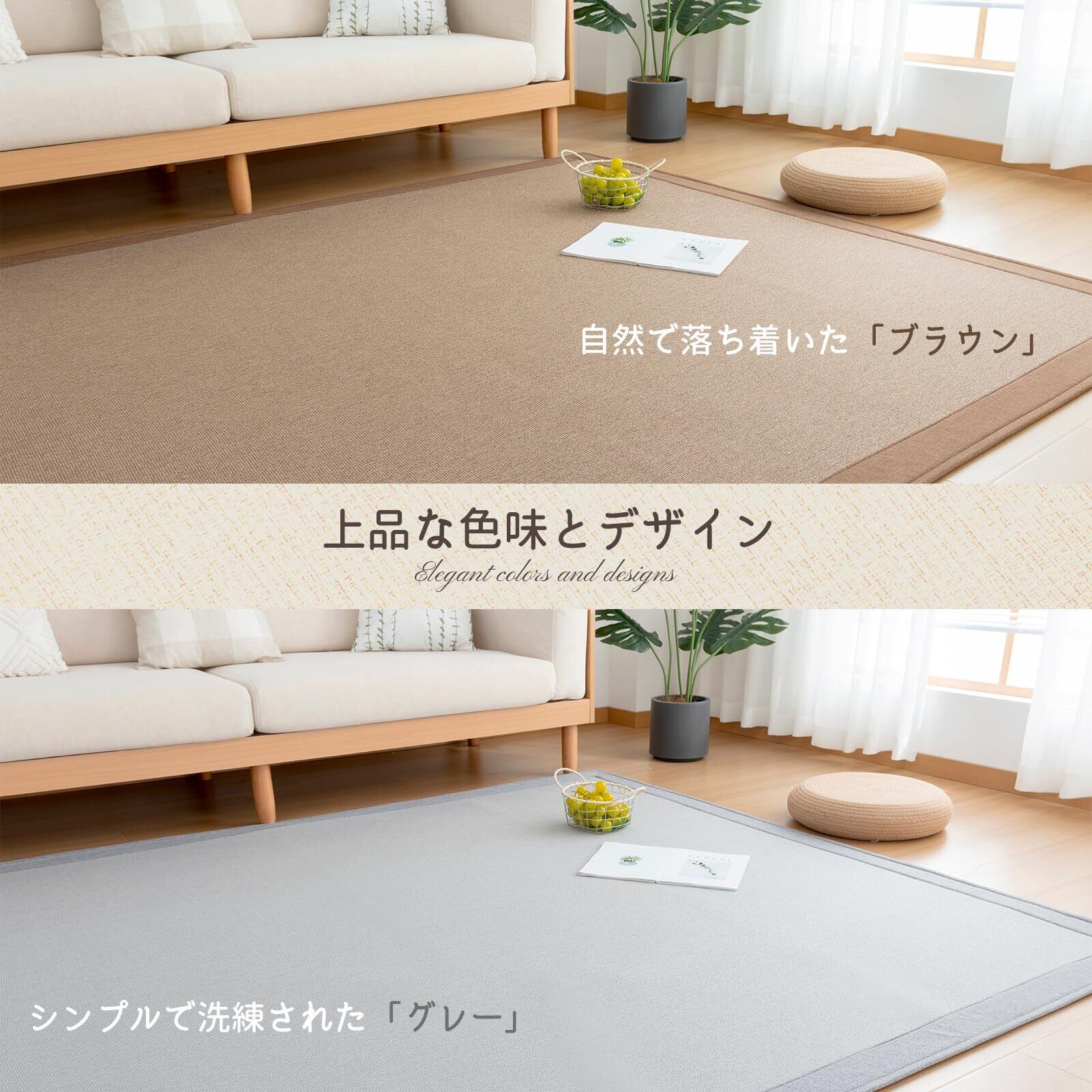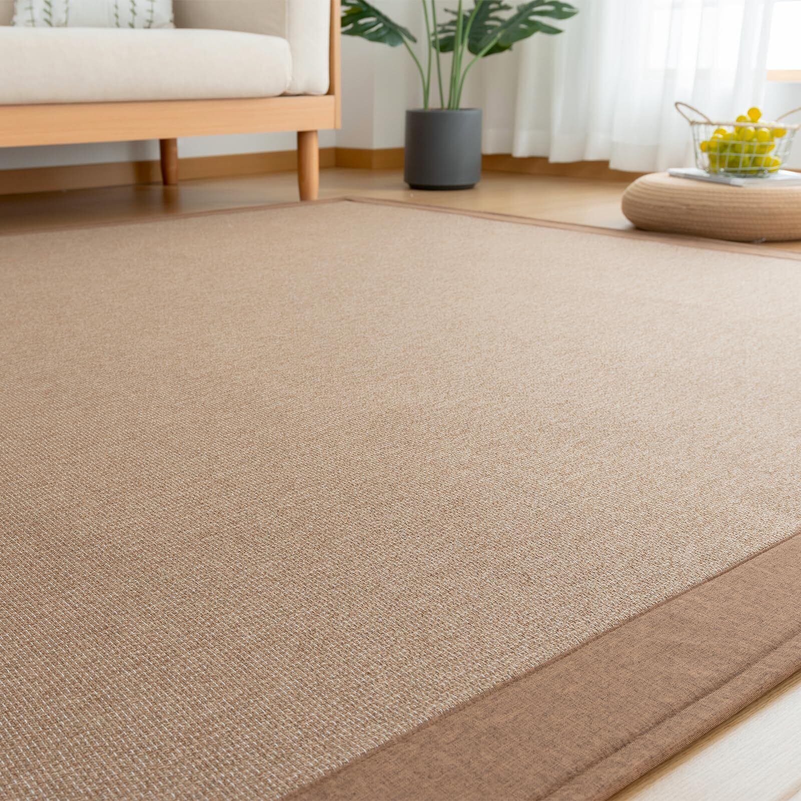 HARUMIN カーペットラグ【2025新発想】 麻風ラグ 190×190cm(約2畳) ラグマット リビング マット 滑り止め 幅広ヘム加工 オールシーズン 床保護 ブラウン