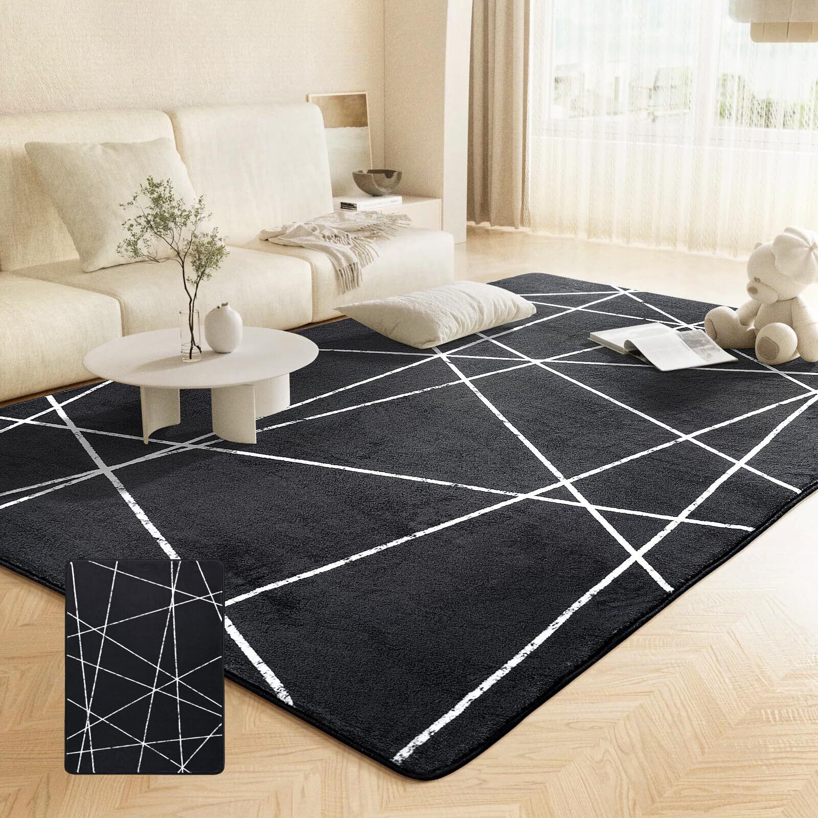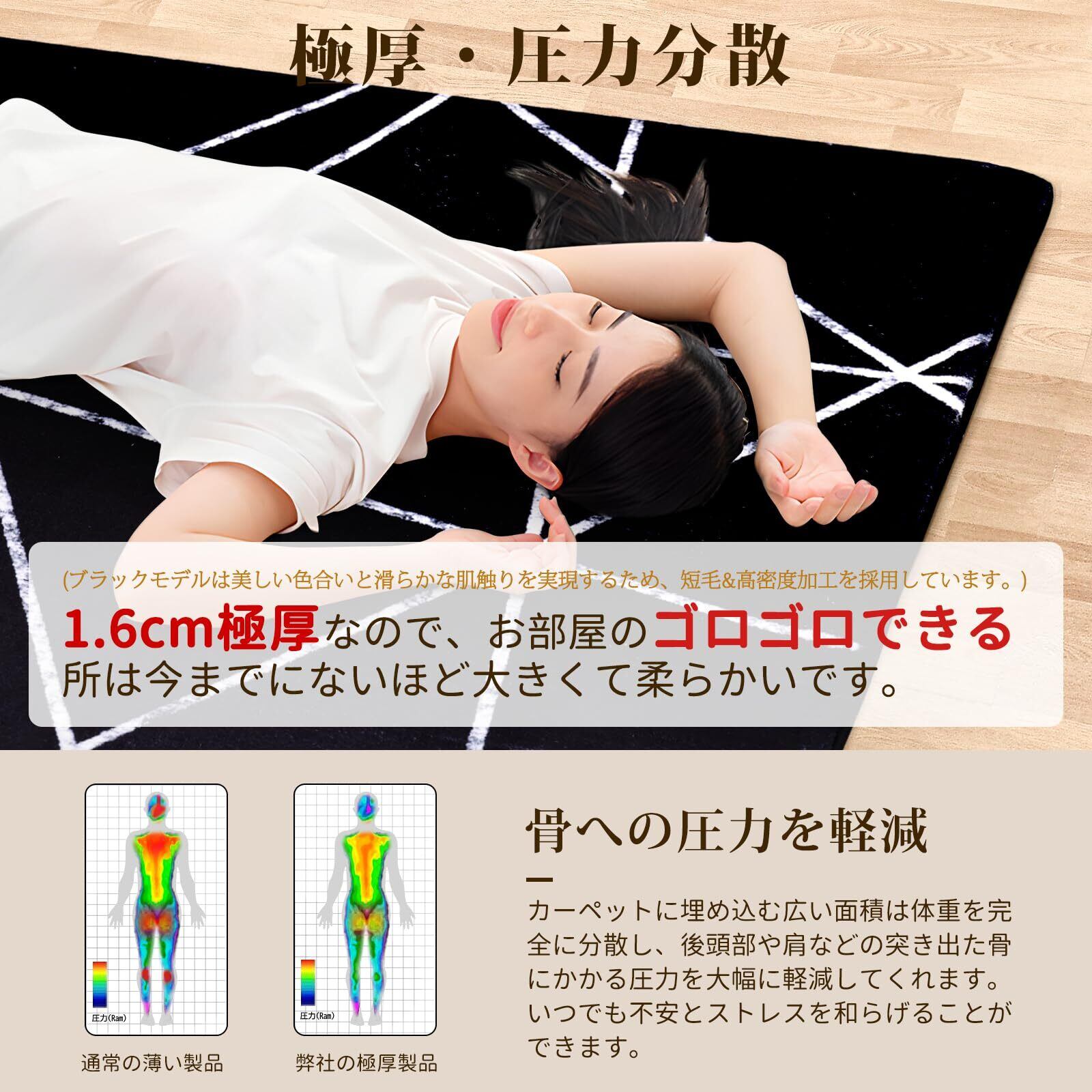 Beddiny カーペット ラグ マット 0.7畳 1.6cm極厚 洗える オールシーズン 滑り止め 地毯 じゅうたん 絨毯 防音 フローリング クッションマット 80*140cm ブラック 黒 ふわふわ肌触 低反発 厚手 ホットカーペット対応 | kki