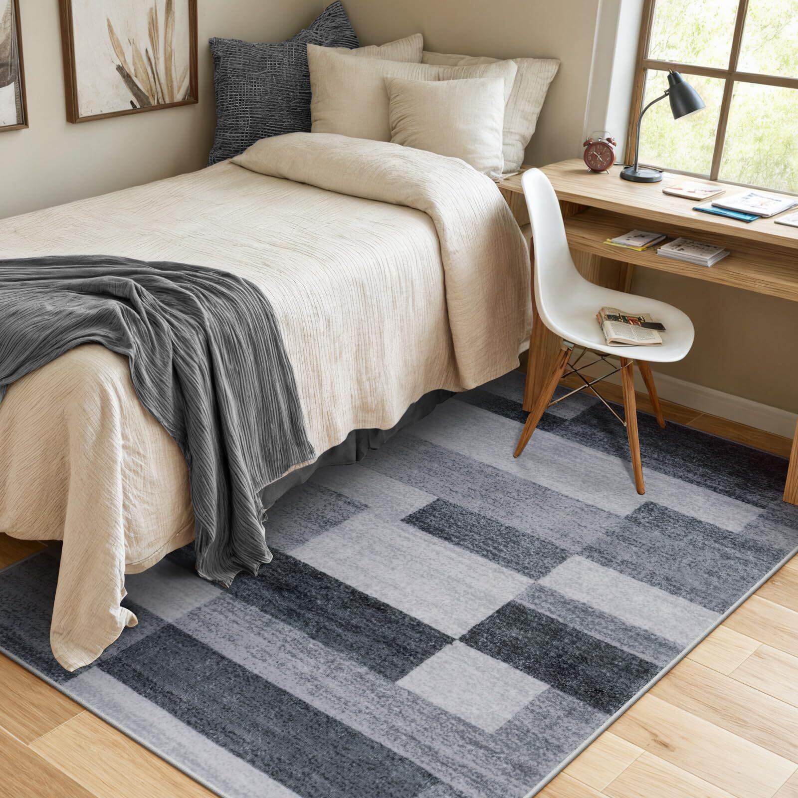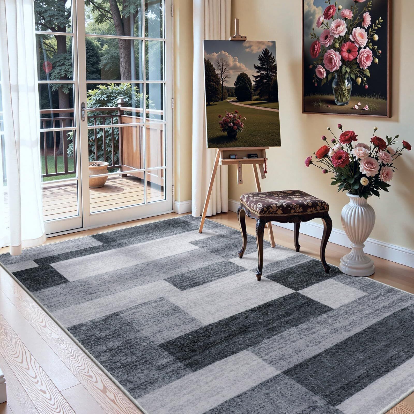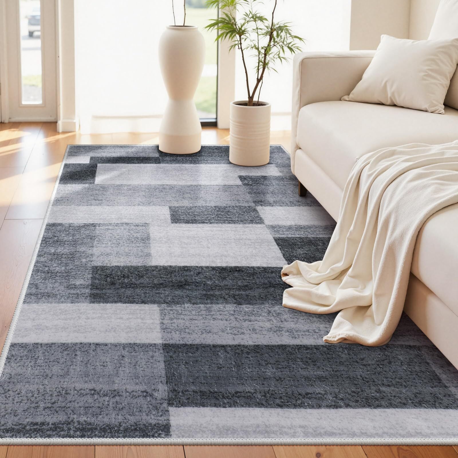 HAOCOO カーペット 洗える 140х200cm ラグ 約1.5畳 北欧風 モダン ホットカーペット対応 ふわふわ 滑り止め 防音 抗菌防臭 室内用 長方形 ラグマット オールシーズン適用 モザイク カラーマッチング グレー | kki