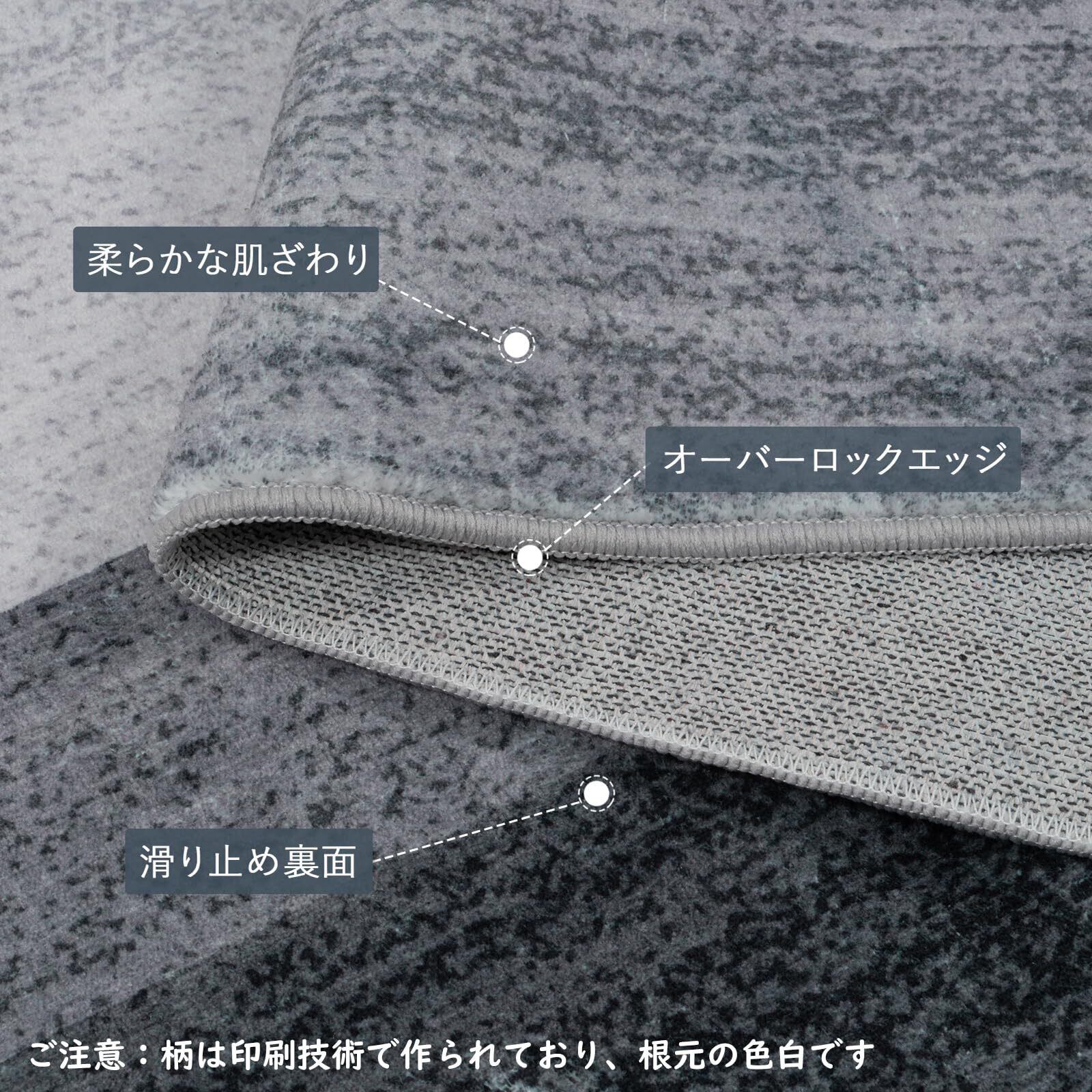 【幅広く活躍】ラグは機械織り製造で、丈夫で破れにくく、床を保護すると同時にインテリアとしても活用できま す。端縁にはオーバーロックの加工を施し、遊び毛が出たり、形を崩れたりしにくく、優れた耐久性を実現 します。また、ほどよい厚さで、オールシーズンお使いできます。ベッドサイド、リビングルーム、ベランダ、やダイニングの テーブルの下など様々なシーンで活躍します