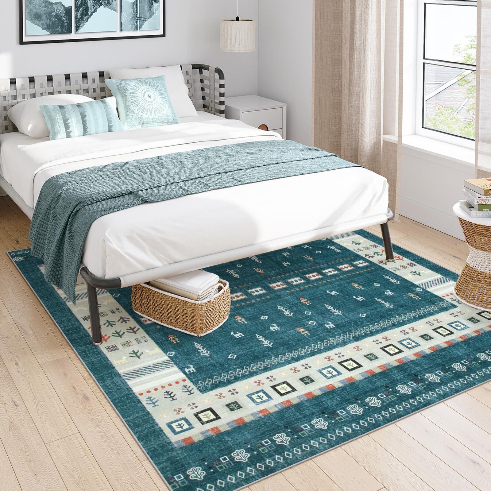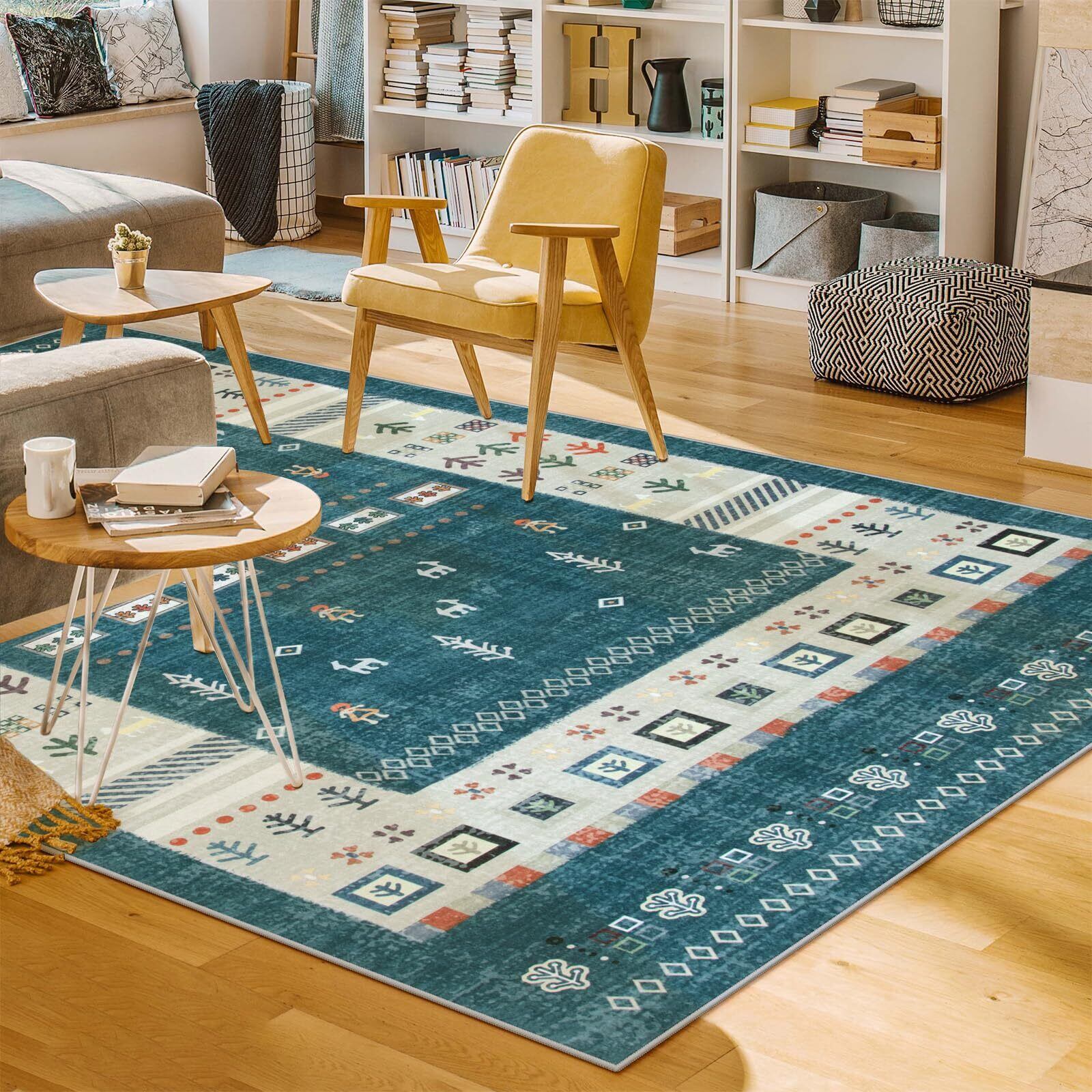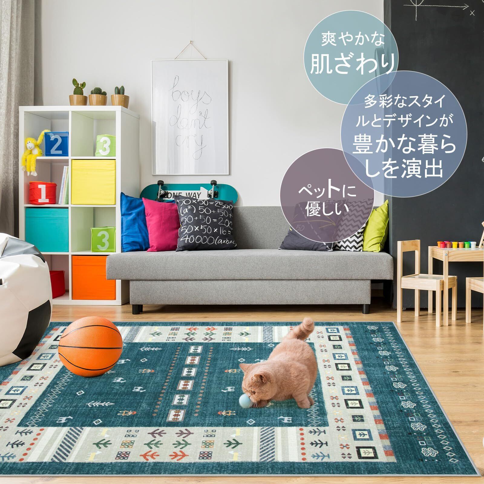 HAOCOO カーペット 2畳 185х185cm 正方形 ラグ 洗える エスニック風 民族 カーペット対応 滑り止め 床保護 防音 リビング シェニール ラグマット オールシーズン適用 抗菌防臭 耐磨耗性 薄手 ギャベ柄 ピーコックブルー | kki