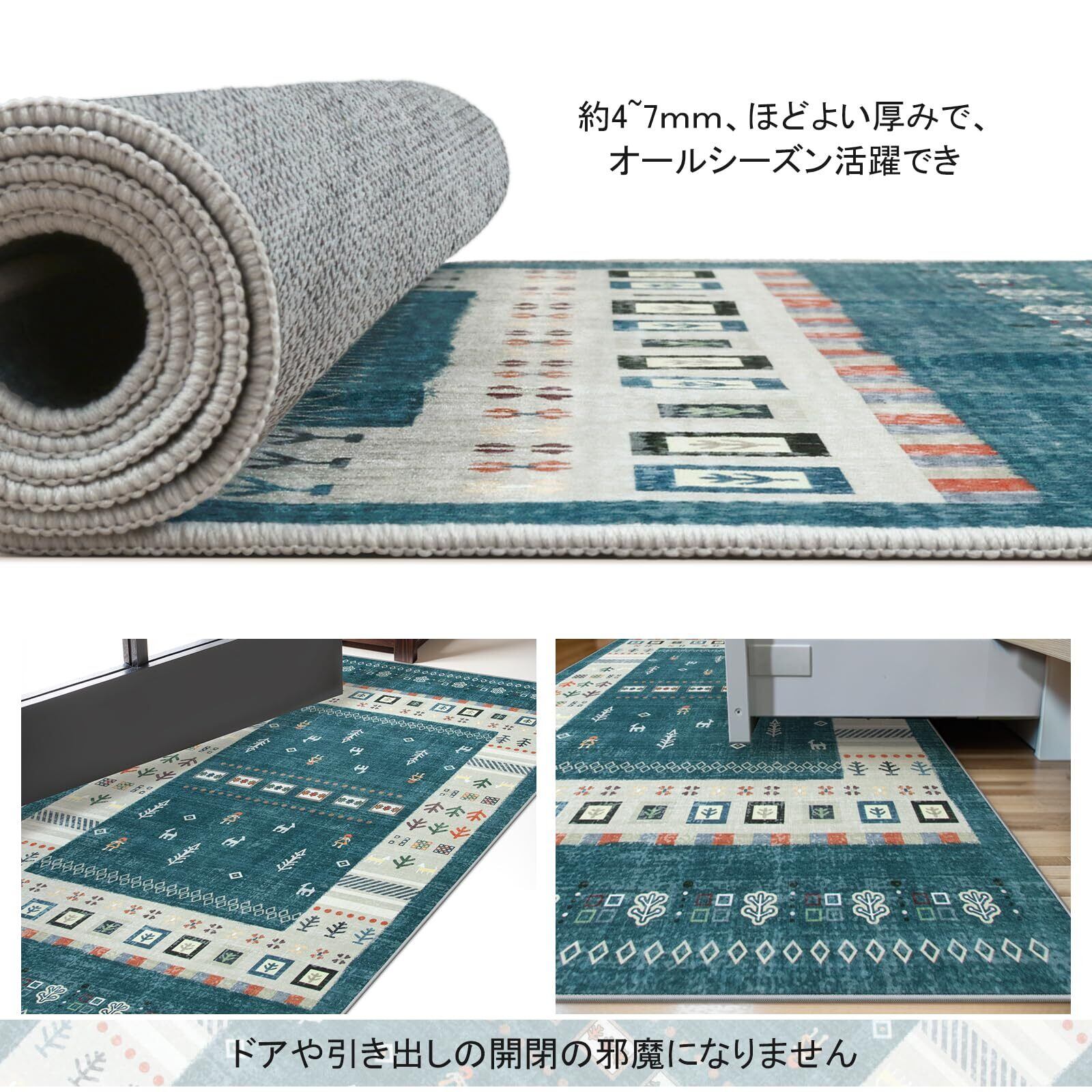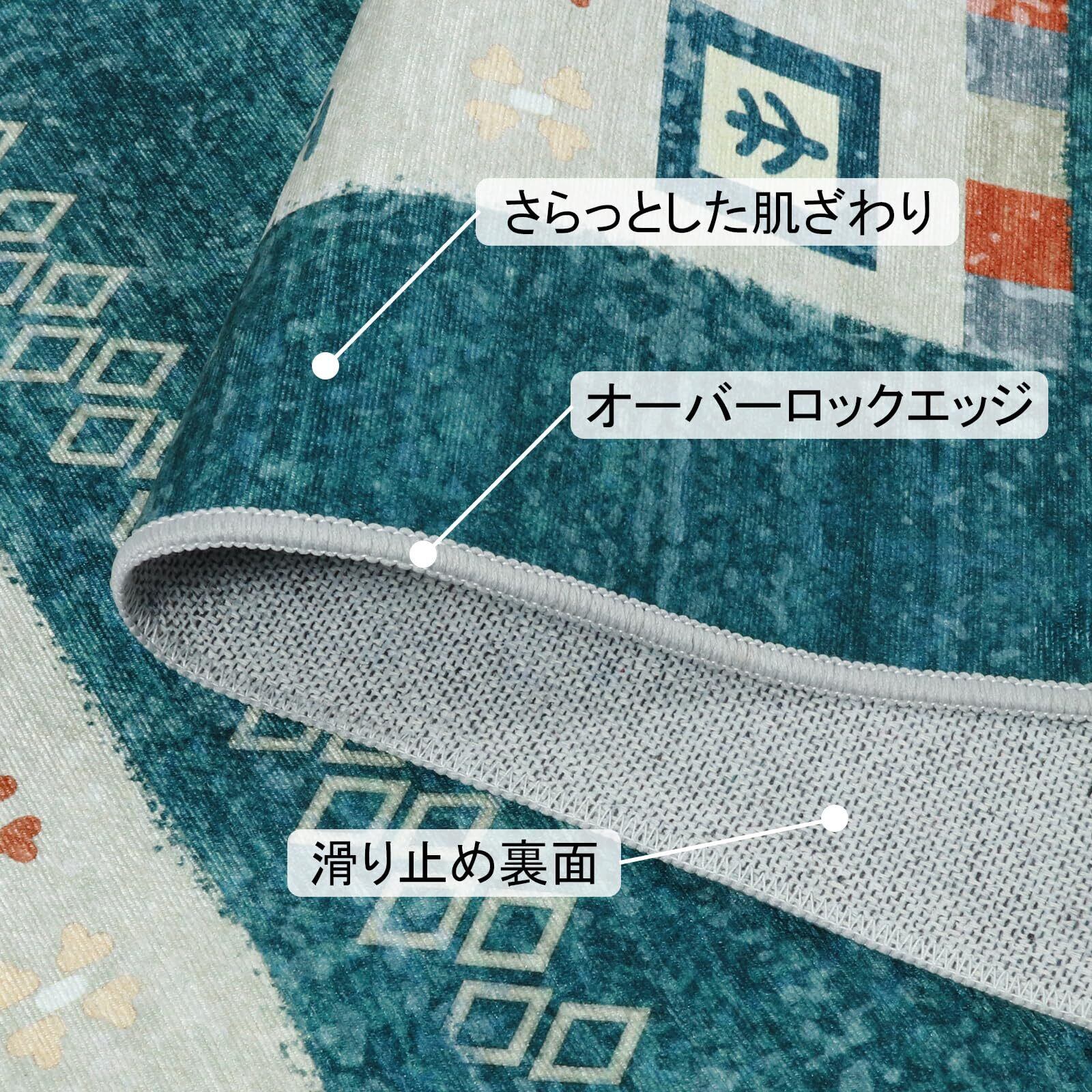 【カラフルなデザイン】さまざまなスタイルのパターンからお選びいただけます。ヴィンテージなエスニックな雰囲気と明るい色、伝統的なギャベ柄がインテリア空間に魅力を加えます。先端の印刷技術より駆使され、平織り生地に繊細な画像がプリントされ、ラグの上品さ を演出します。端縁にはオーバーロックの加工を施し、遊び毛が出たり、形を崩れたりしにくく、優れた耐久性を実現 します。更に、角は細いパイピングで、軽やかな印象に仕上げています。