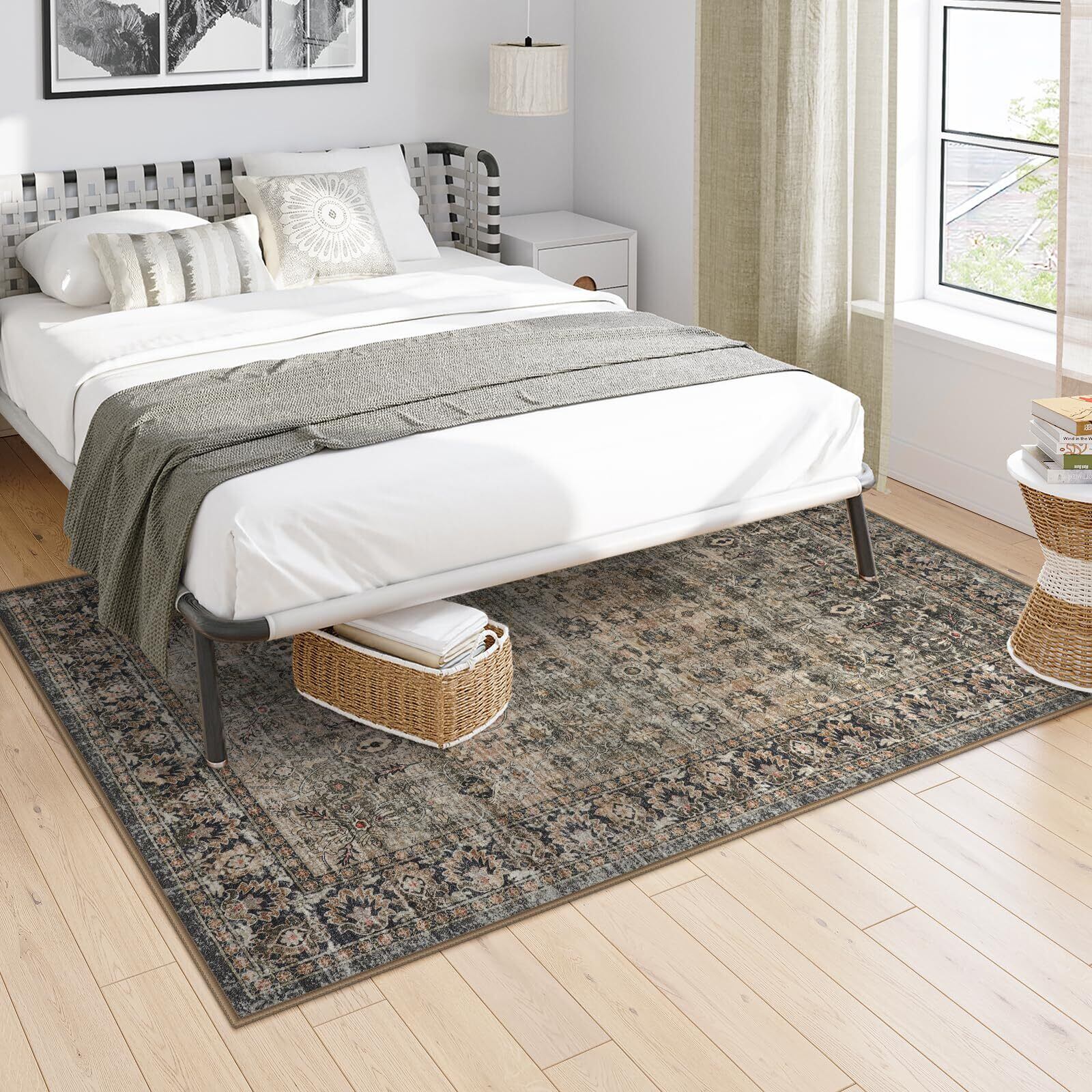 HAOCOO ラグ カーペット 洗える 140×200cm オールシーズン適用 絨毯 ペルシャ風 ラグマット 1.5畳 ふわふわ 滑り止め ホットカーペット対応 防ダニ 防臭 防音 リビング 寝室 デスクマット ダイニングマット アンティーク 花柄 | kki