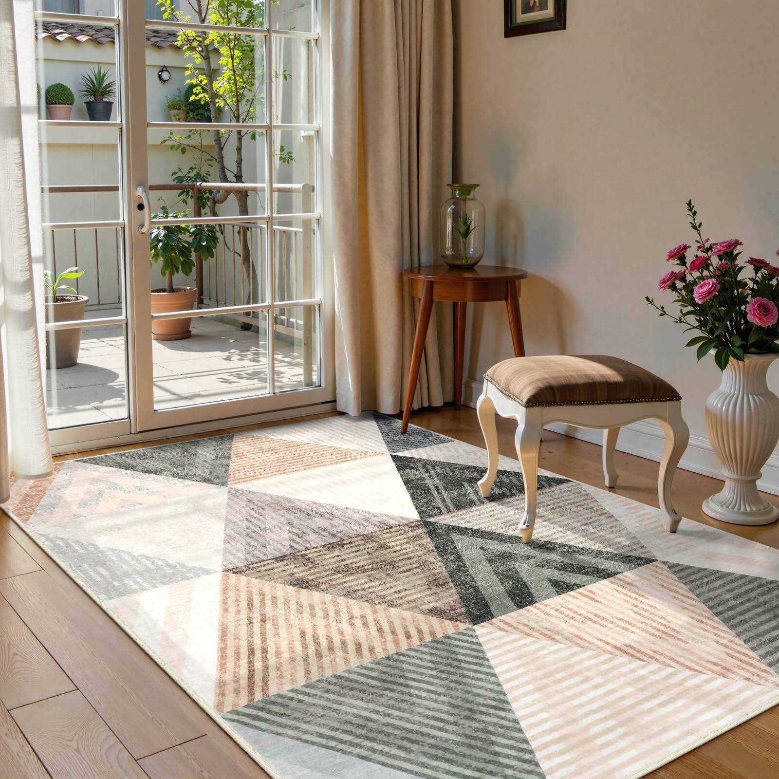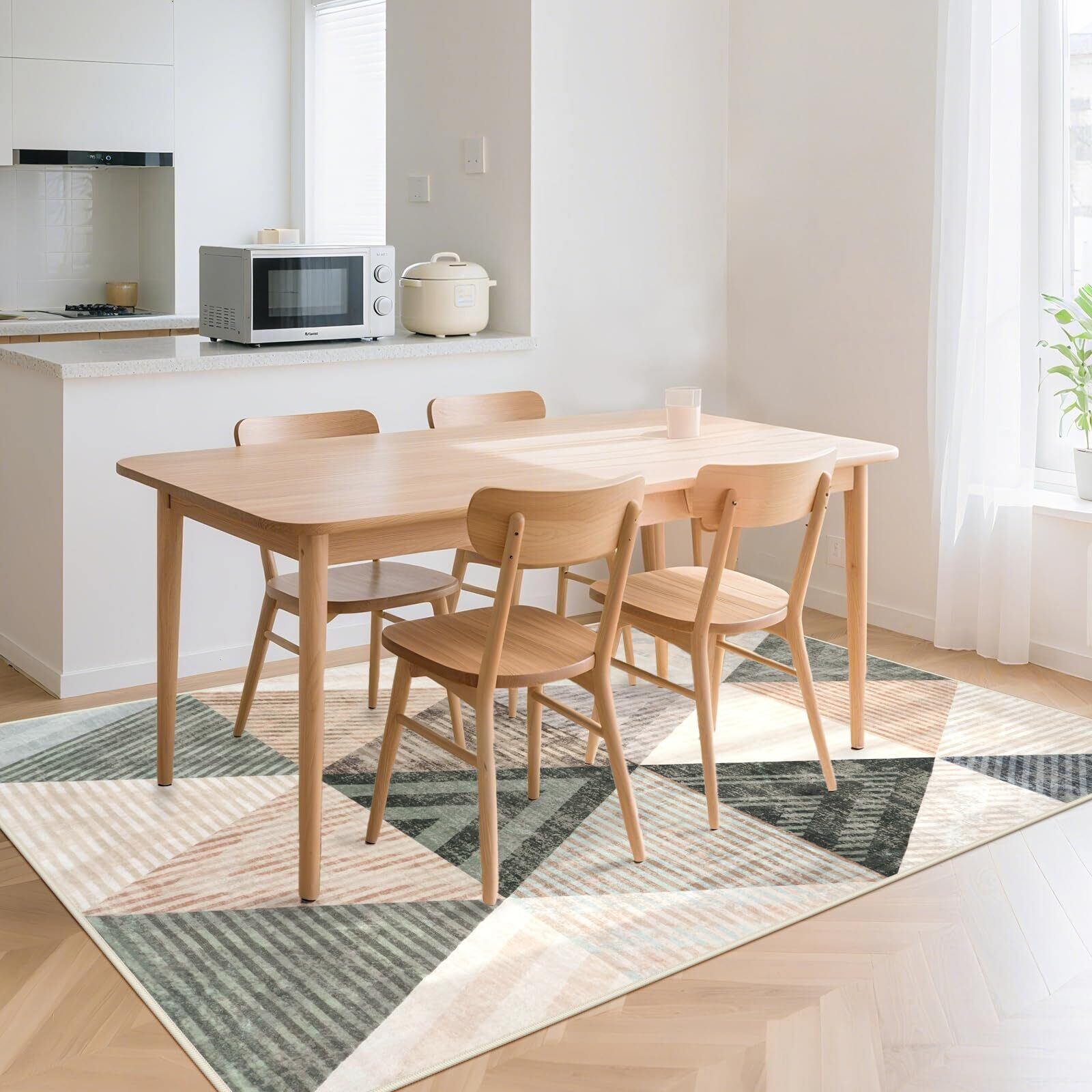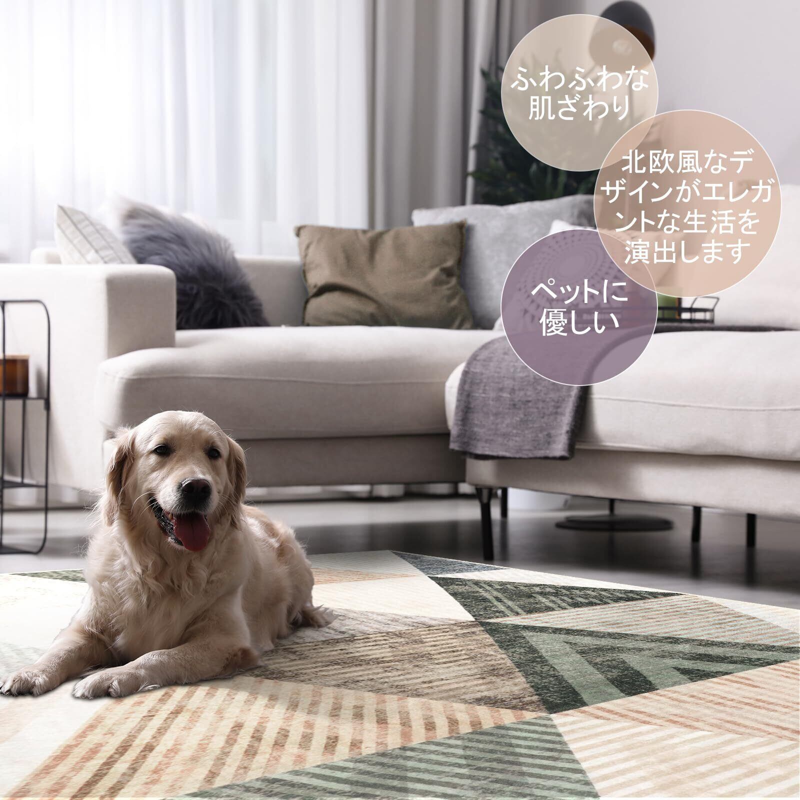 HAOCOO カーペット 洗える 140х200cm 夏用ラグ 約1.5畳 幾何学 北欧風 モダン ふわふわ 滑り止め 防音 抗菌防臭 室内用 長方形 ラグマット オールシーズン適用 三角形柄 カラーマッチング ライトブラウン | kki