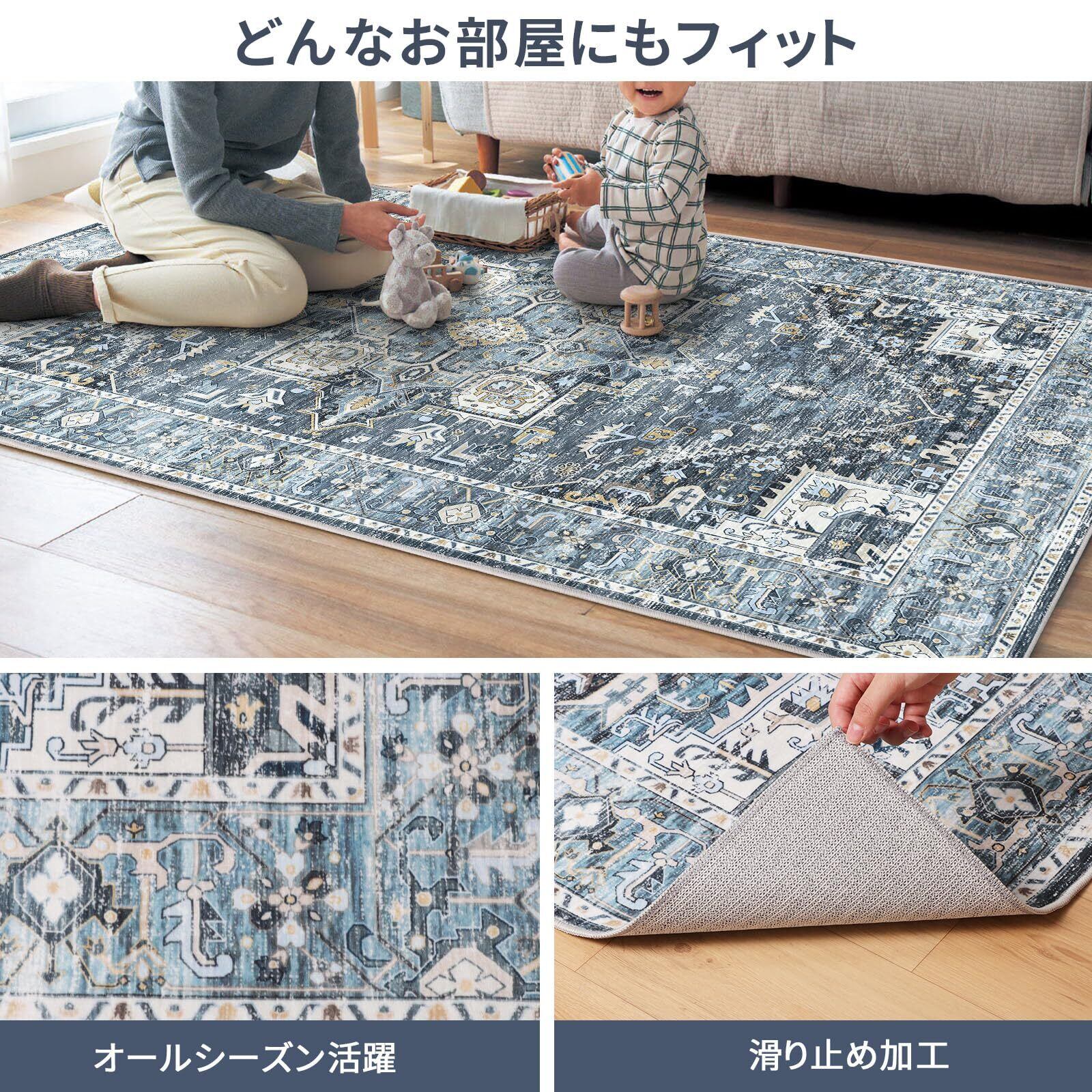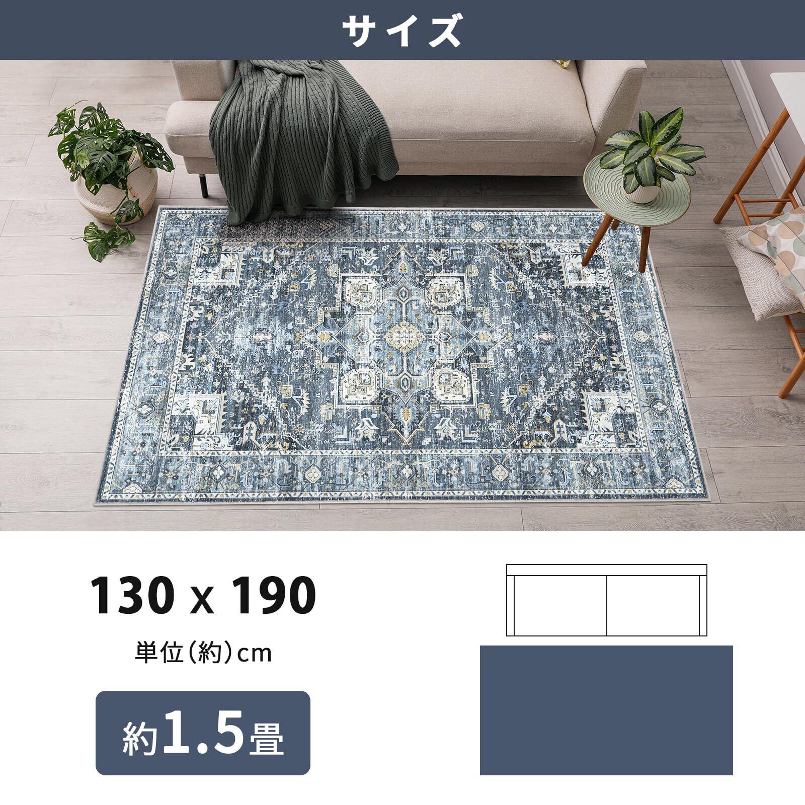 ラグ カーペット マット ペルシャ風絨毯 大判 130×190cm(1.5畳相当)|インテリア 北欧 チェアマット | 洗える 滑り止め 低反発 防音 床暖房対応|抗菌防臭 防ダニ|北欧 幾何学 デザイン|リビング・オフィス オールシーズン 青 ブルー
