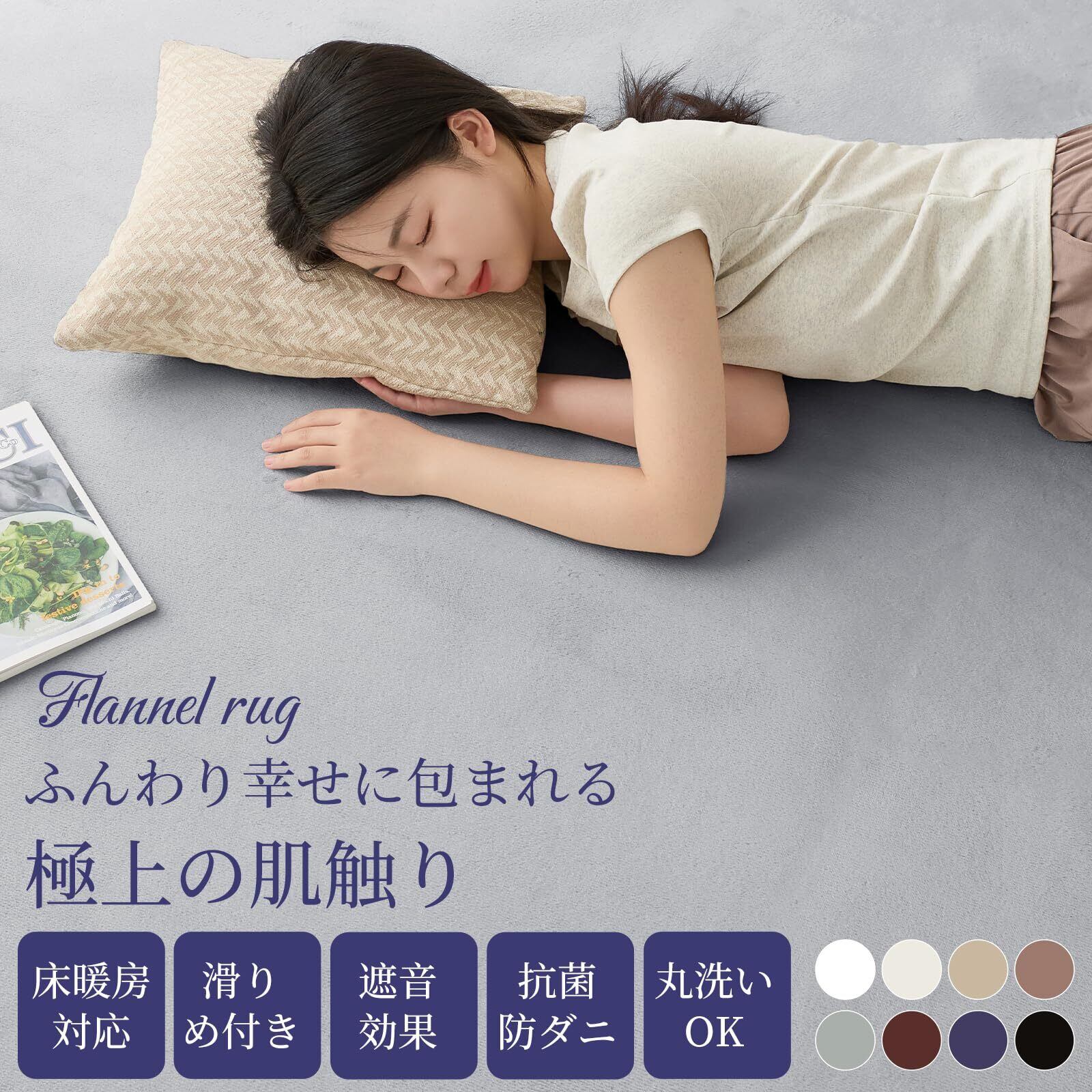 Matdeco カーペット ラグ ラグマット滑り止め付 洗える 135×185cm 約1.5畳 絨毯 防ダニ 抗菌 防臭 オールシーズン快適に使用 床暖房 ホットカーペット対応 ふわふわ肌触り フランネルラグ 無地 グレー | kki