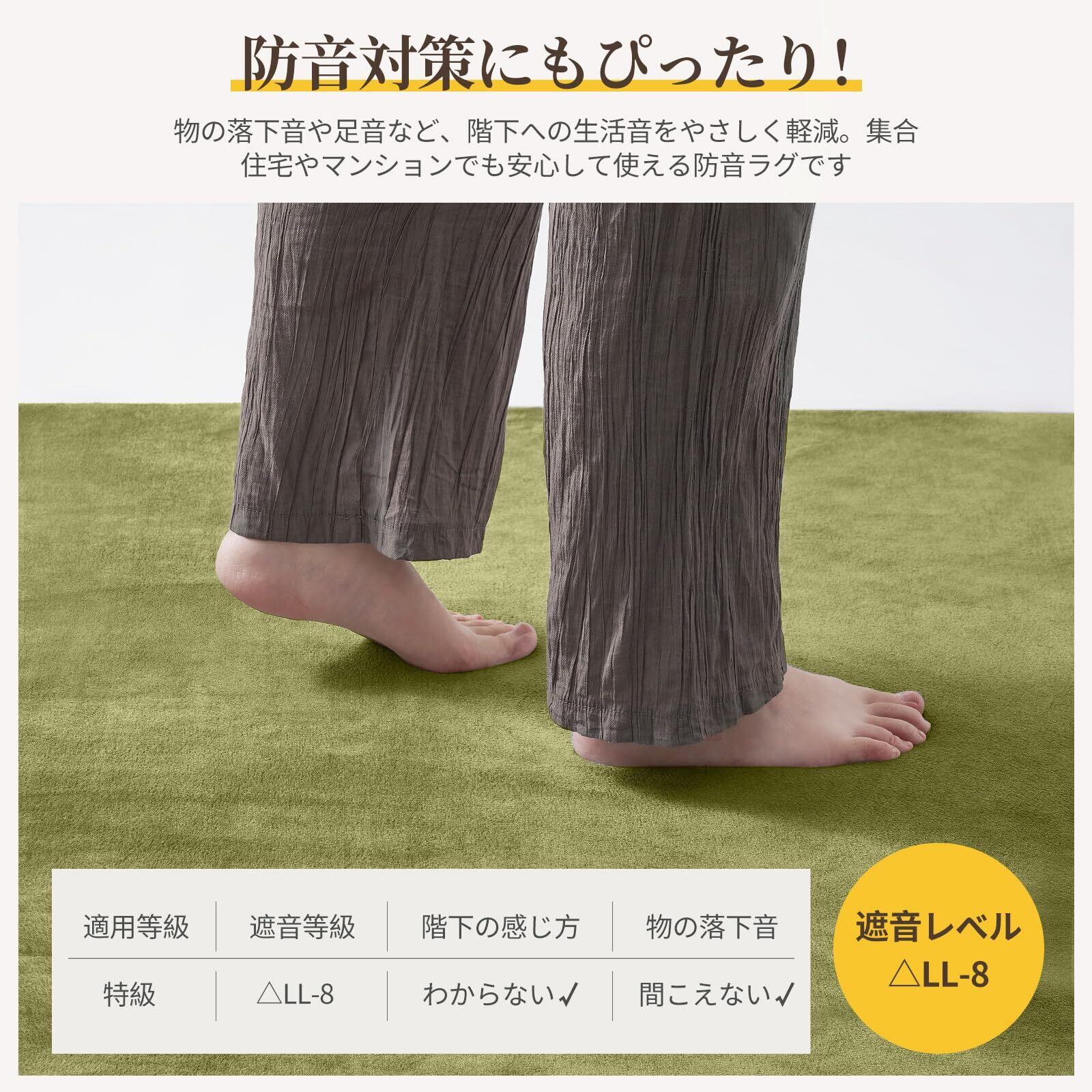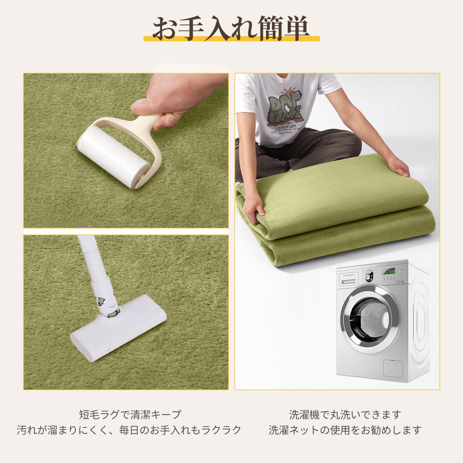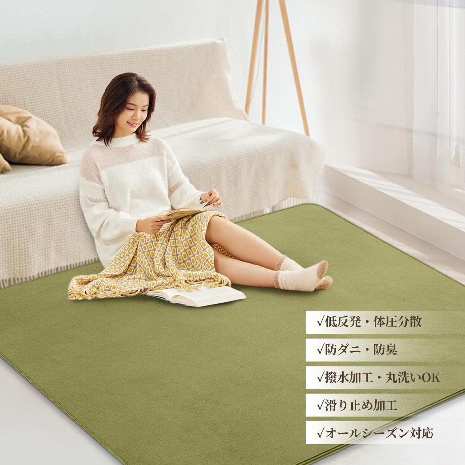 Fcyld カーペット ラグ ラグマット 2畳 厚手 15 mm 185x185 cm 低反発ラグ 絨毯 洗える じゅうたん 滑り止め付 素肌にやさしい ホットカーペットカバー 防ダニ 防臭 抗菌 撥水加工 オールシーズン対応 床暖房 ふわふわ肌触り 無地 グリーン