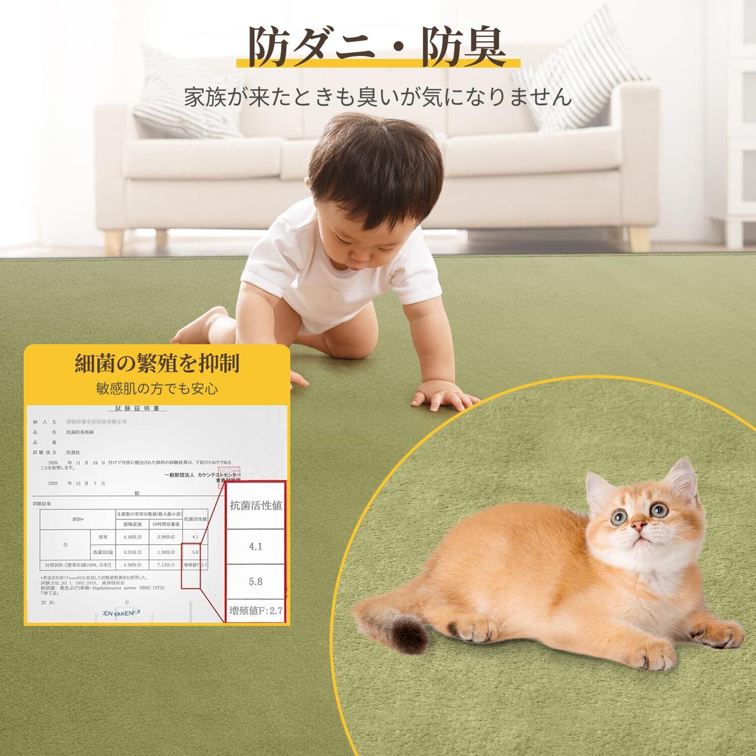 Fcyld カーペット ラグ ラグマット 2畳 厚手 15 mm 185x185 cm 低反発ラグ 絨毯 洗える じゅうたん 滑り止め付 素肌にやさしい ホットカーペットカバー 防ダニ 防臭 抗菌 撥水加工 オールシーズン対応 床暖房 ふわふわ肌触り 無地 グリーン | kki