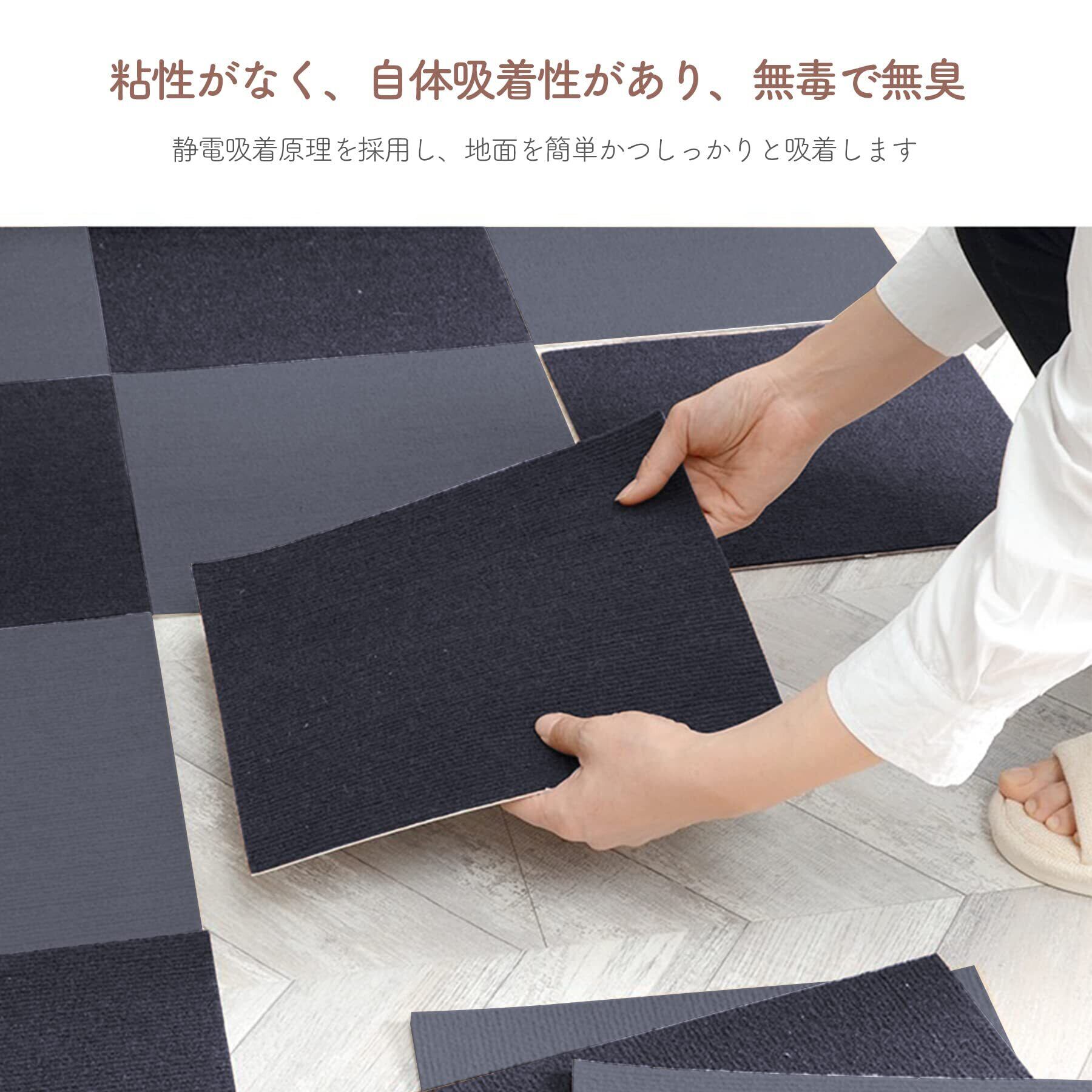 ATOKA タイルカーペット ジョイントマット タイルマット 吸着マット 大判【30*30cm*20枚】玄関 滑り止めマット カーペット 自宅/オフィス 床保護 防音 ハサミでカット可 洗える ペット/お年寄り 向けです 猫犬滑り止め対策 設置簡単(ブラック+ダークグレー) | kki