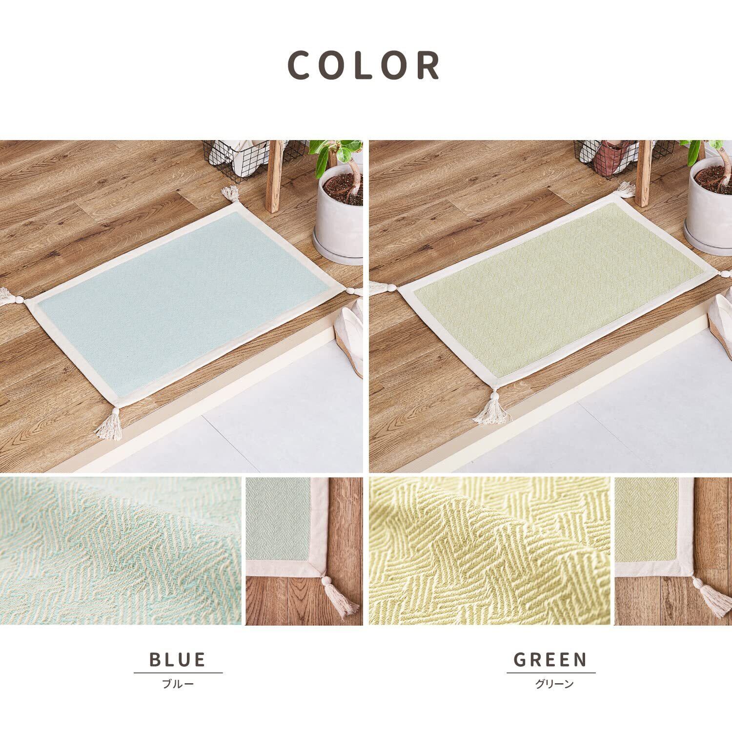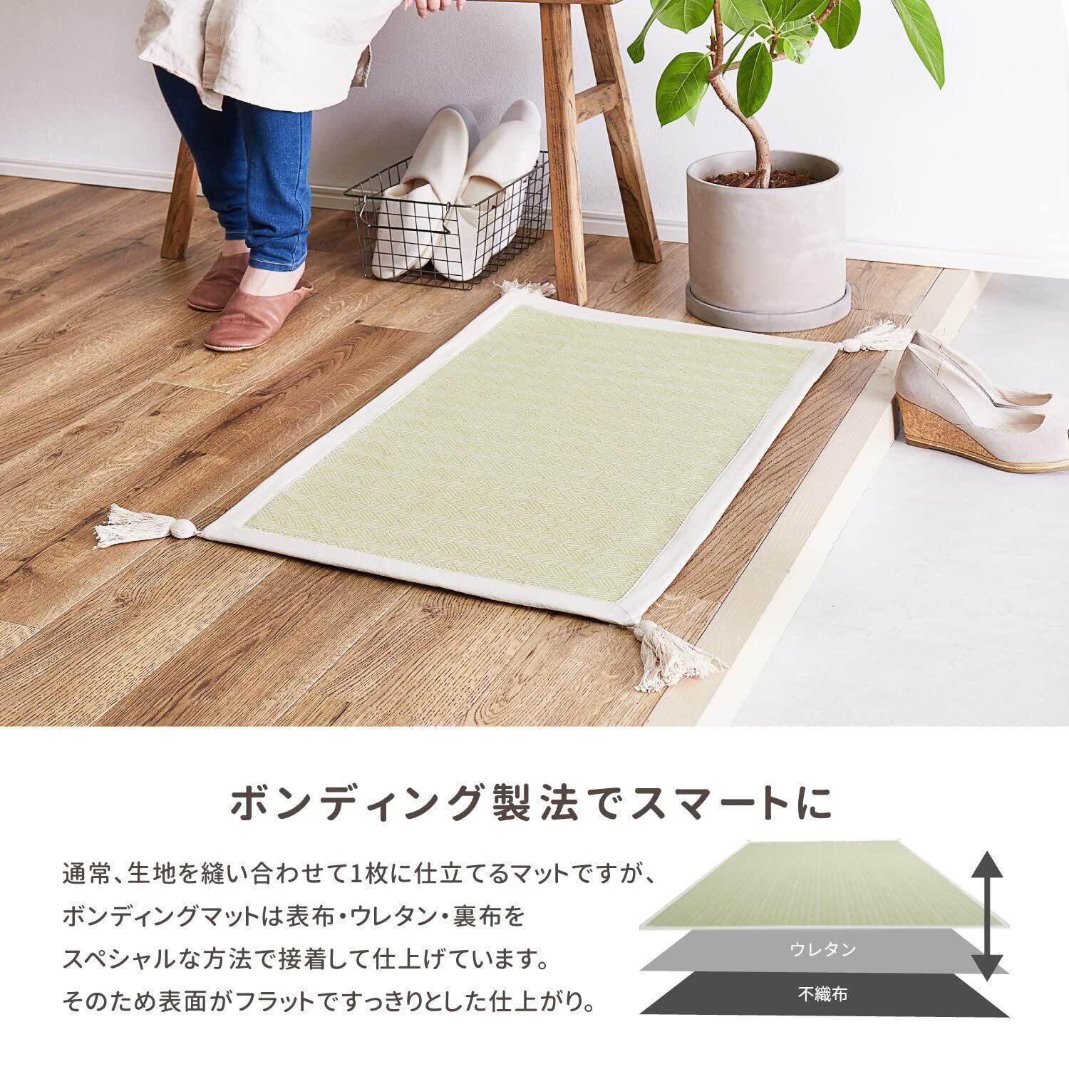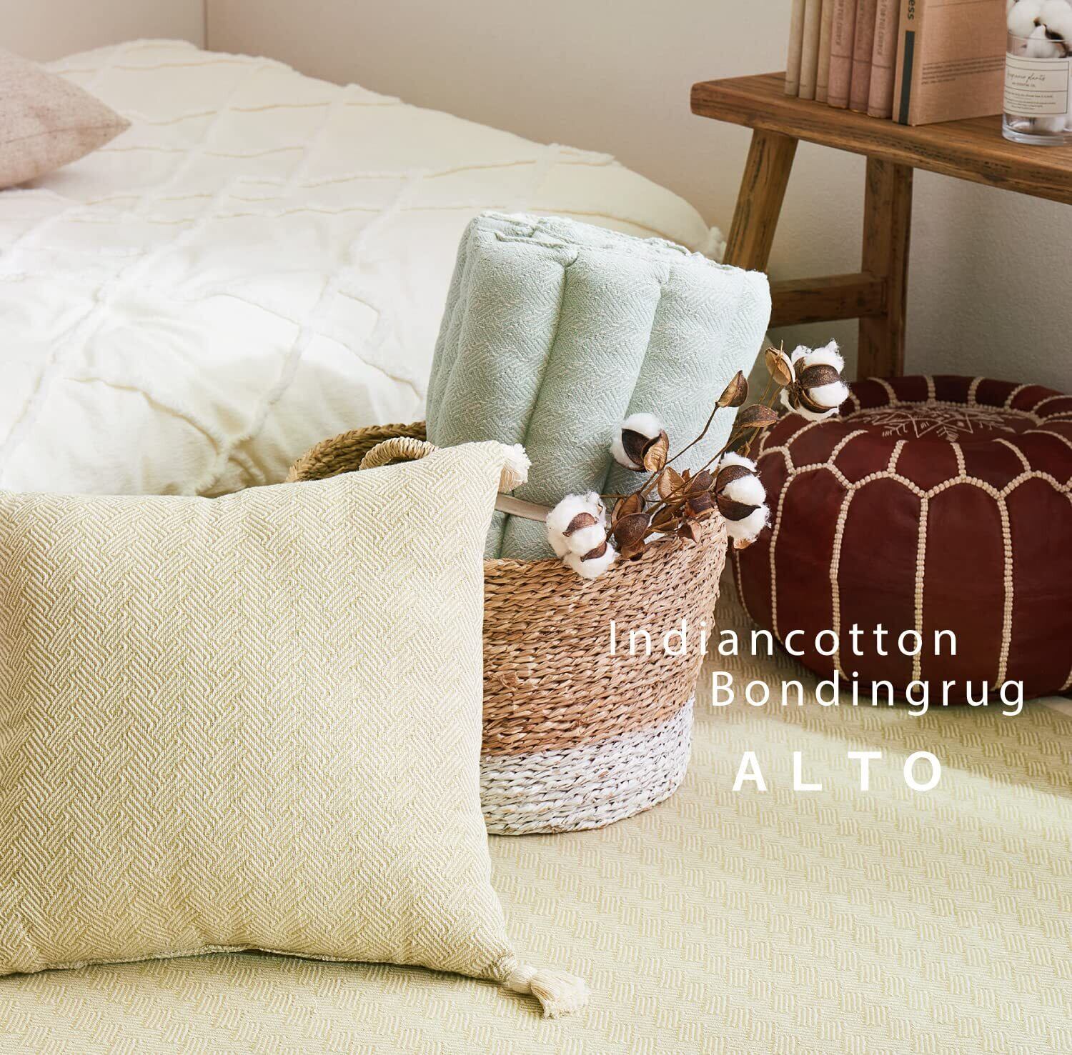 絶妙な色合いで空間にこなれたオシャレ感を演出してくれる「アルト」シリーズのボンディングマット。四隅に付いたタッセルもポイントです。洗濯機で洗えるので汚れてもラクして清潔にお使いいただけます。小さいお子様がいるご家庭にもおすすめです。