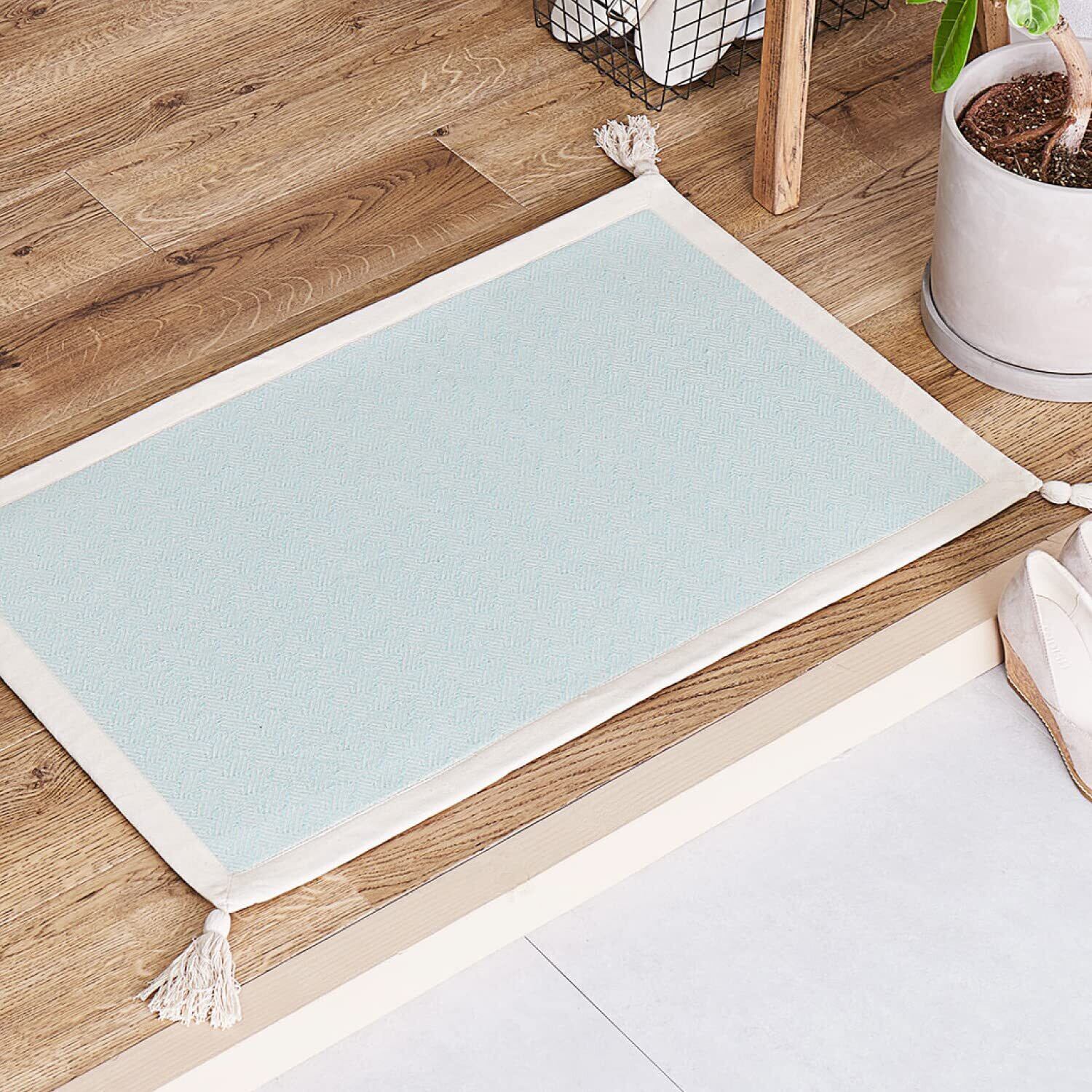 萩原 玄関マット 室内 ブルー 約50×80cm 「アルト」 洗濯機で洗える 綿100% 滑り止め付き ホットカーペット・床暖房対応