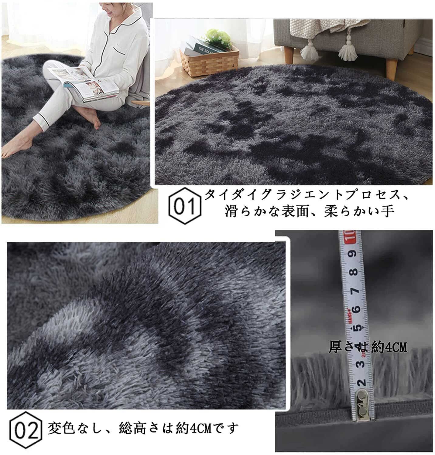 Leesentec カーペット 円形 シャギー ラグ 丸 洗える ラグマット 滑り止め付 抗菌 絨毯 ふわっと手触り 優しいフランネル 北欧 ラグ 防臭 防ダニ オールシーズン 床暖房対応 (直径140cm, スモーキーグレー) | kki