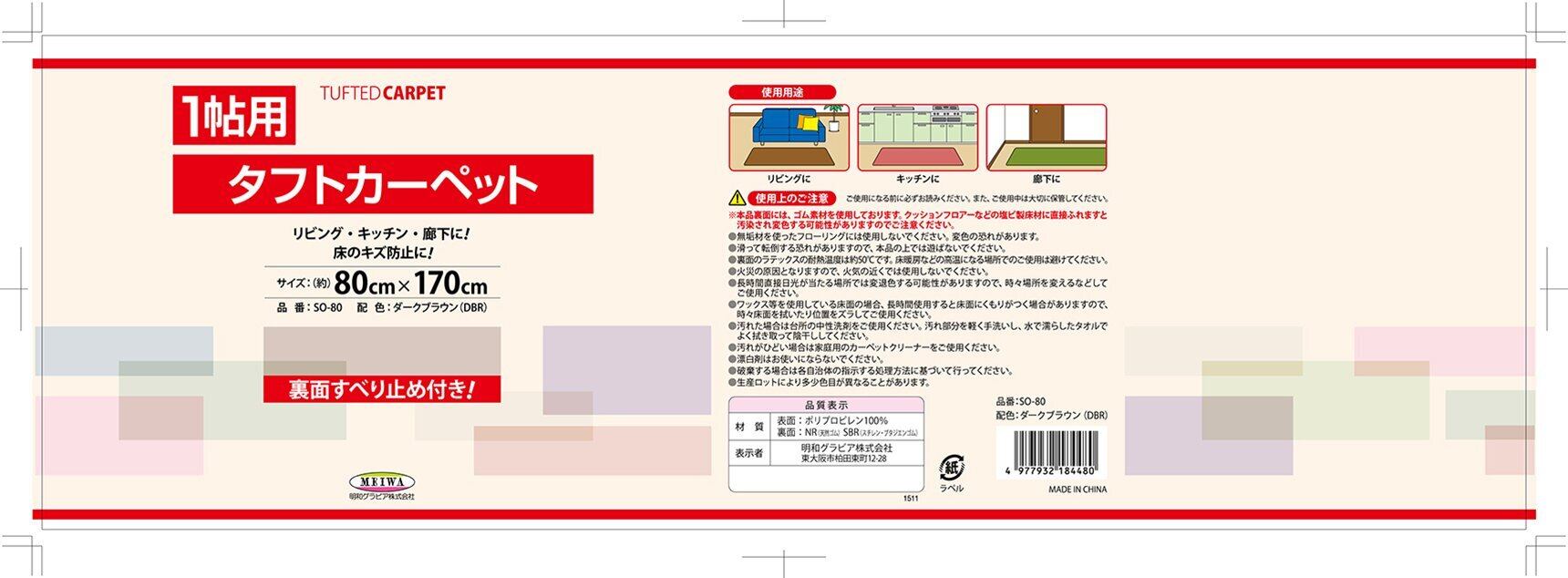 MEIWA 1帖カーペット 滑り止め付 80×170cm 無地 ダークブラウン SO-80
