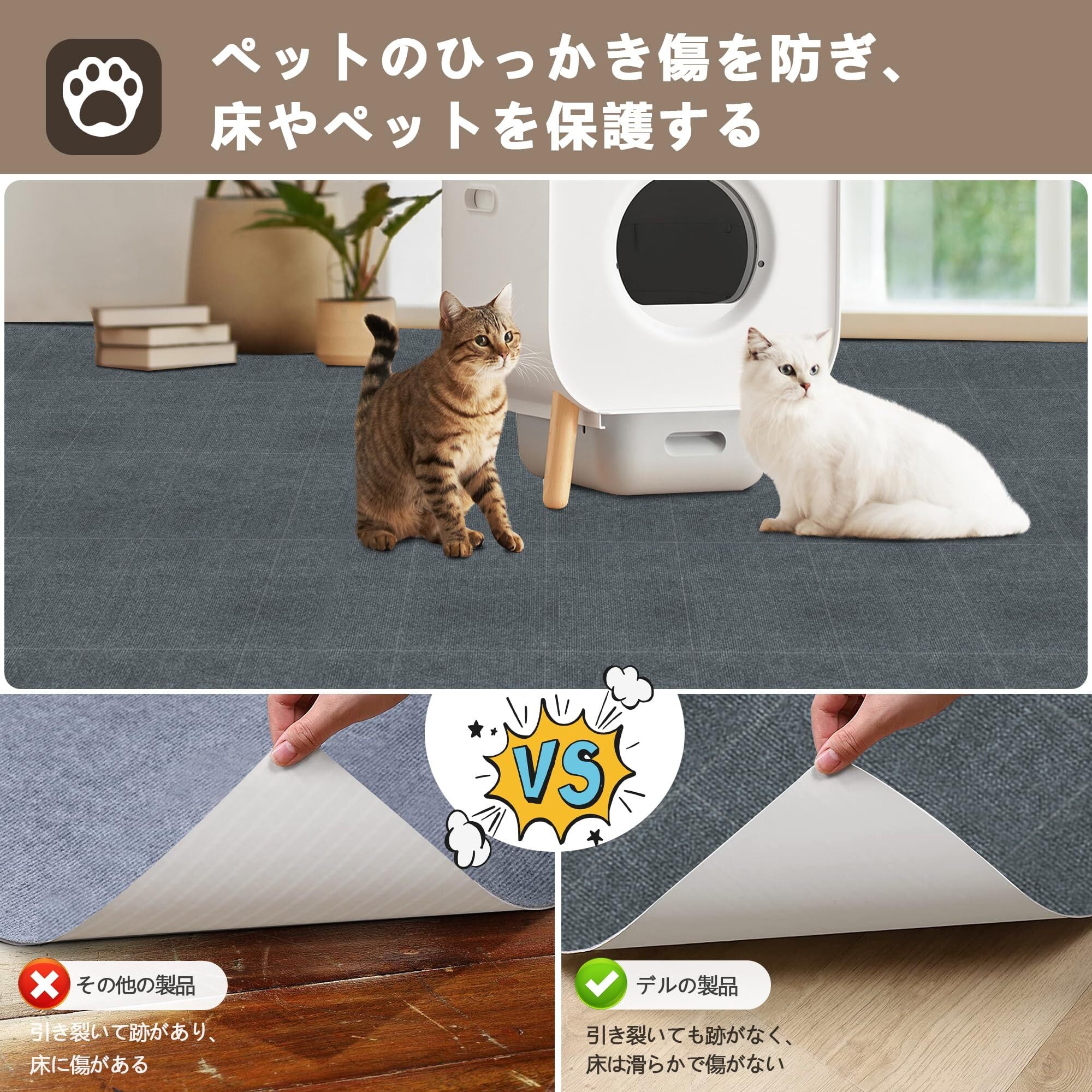 【滑り止め、スーパー吸着力】 床と接触面はアップグレードされたTPR素材、従来品より吸着性UP、耐久性もあり、上で走り回っても、掃除機をかけても、ずれにくくストレスがありません。長時間に使っても、四角を折りません。剥がすときに縁からしたら、簡単に床から外れるし、床にのりの残りや痕跡がなく、繰り返し使用ができます。