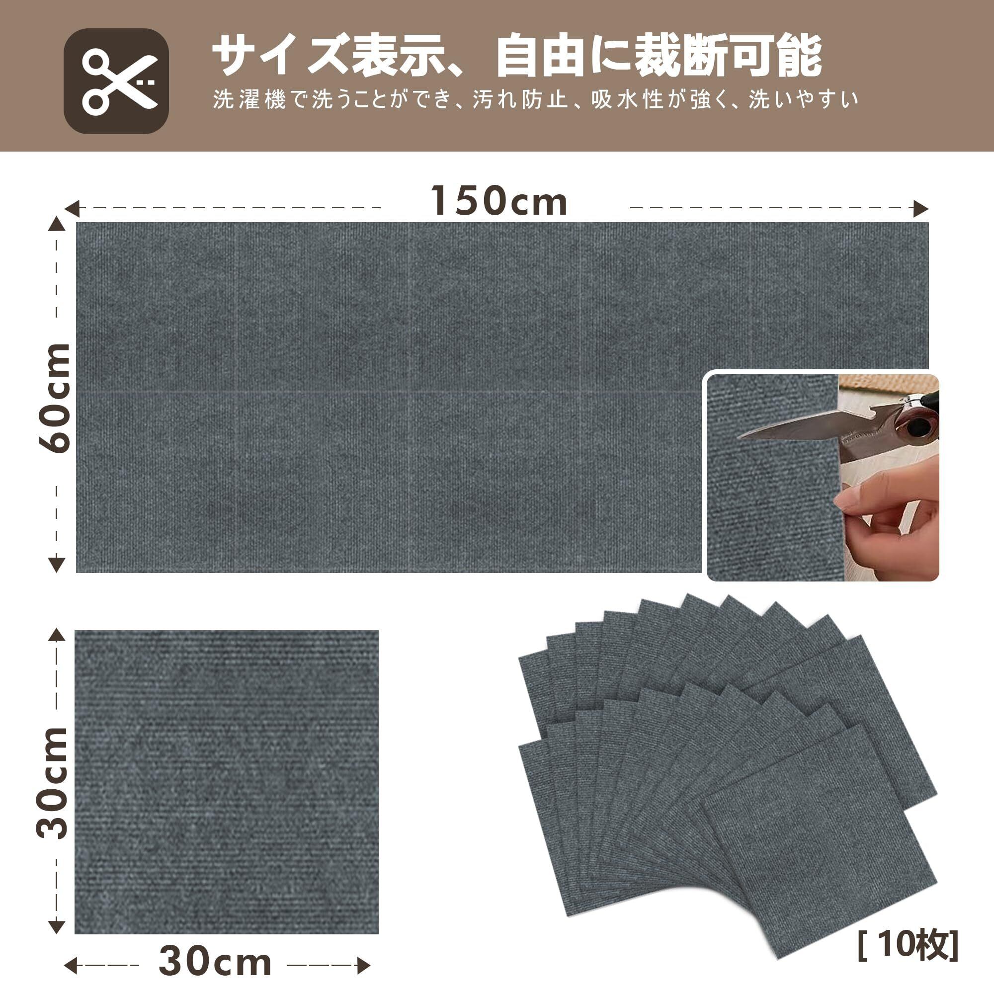 【 限定ブランド】XIWEIYI ジョイントマット 大判タイルカーペット 吸着マット タイルマット【30*30*0.4cm10枚】 防音保温 床暖房にも対応 防音シート 洗える ペット/子供/高齢者の滑り止め対策 手入れ簡単 設置簡単 DIY可能 玄関、廊下、リビング、 厨房(ダークグレー)