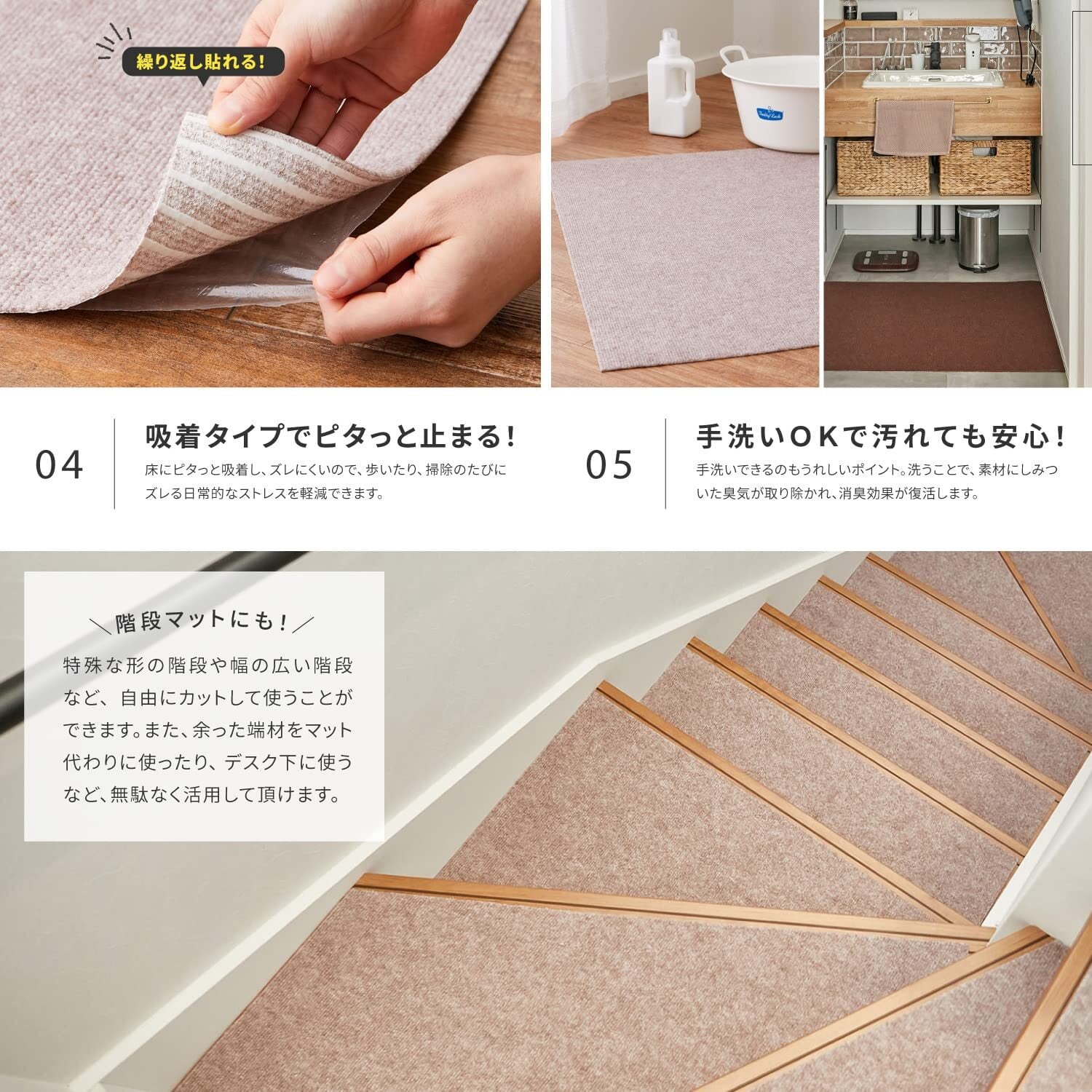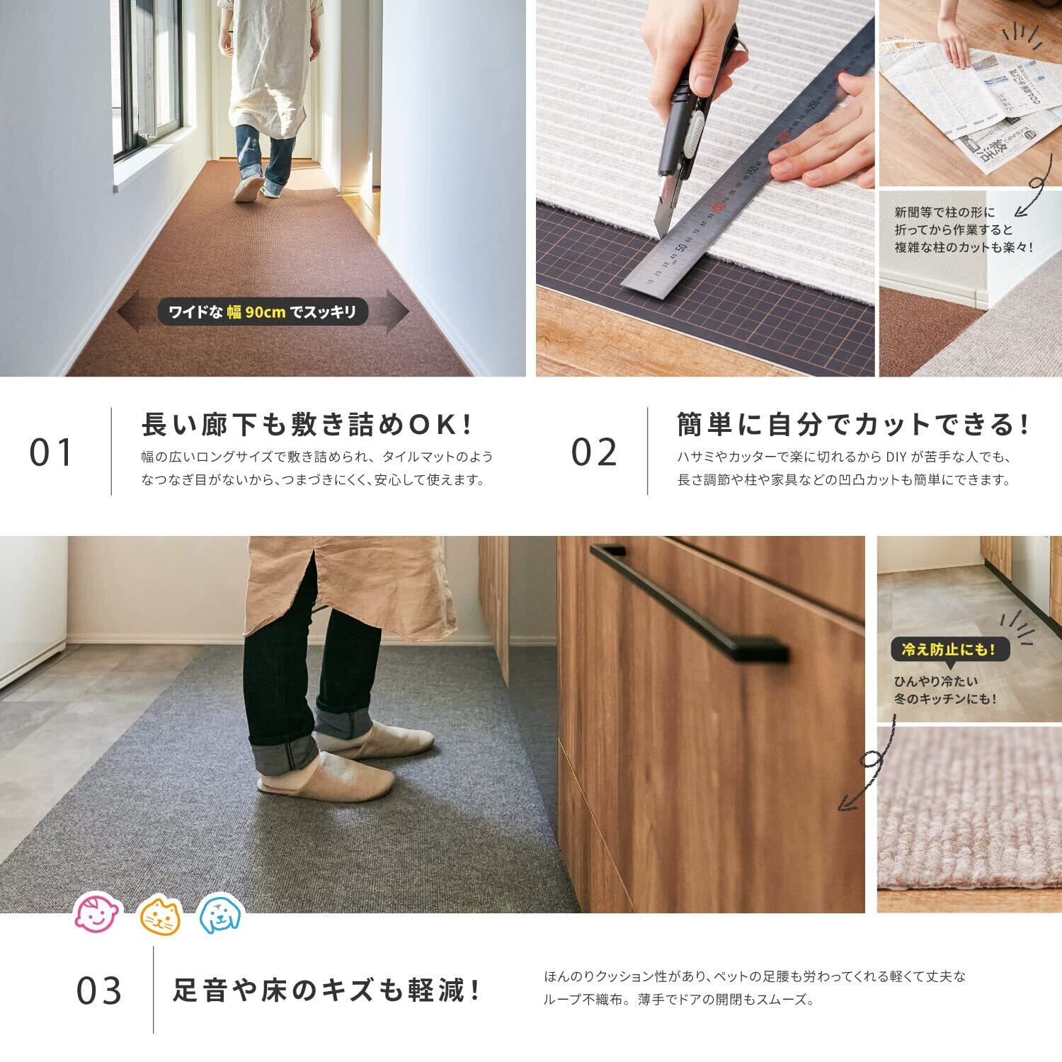 萩原(Hagihara) 廊下敷き カーペット (ベージュ,約90×800cm) 吸着 ピタっと止まる 洗える カットOK 日本製