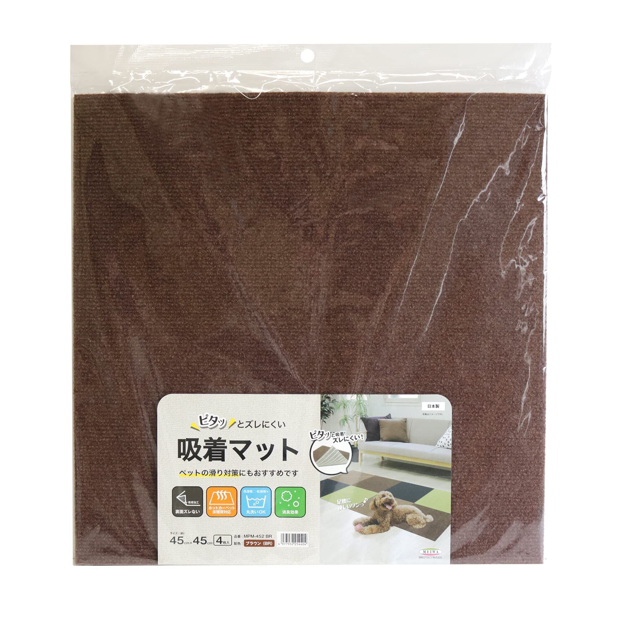 明和グラビア ピタッとズレない吸着マット ホットカーペット対応 床暖房対応 丸洗いできる 消臭機能付き フリーカット MPM-452 ブラウン色 45cm×45cm×4枚