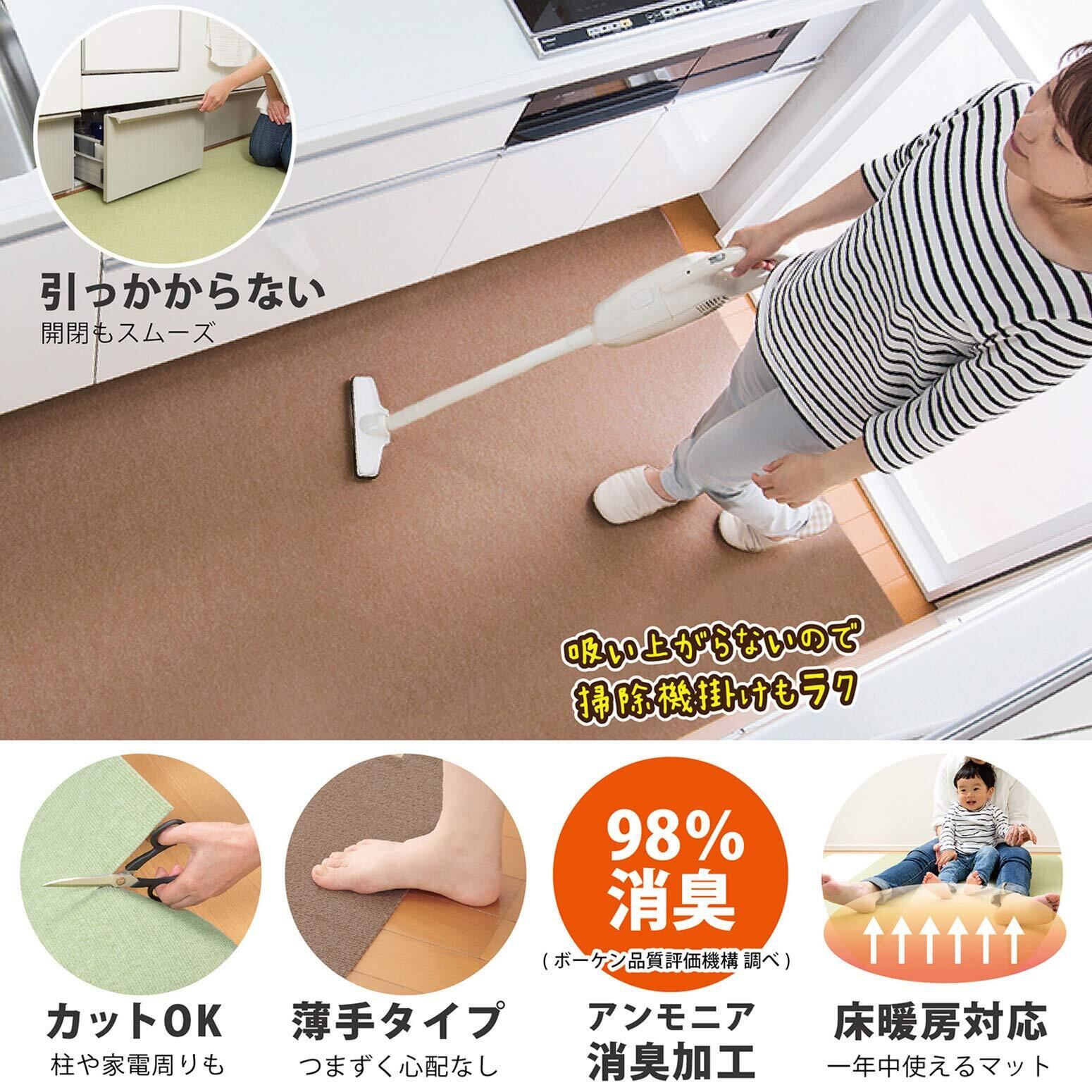 サンコー キッチンマット はっ水 洗える ロングマット 台所 廊下 日本製 おくだけ吸着 カーペットタイプ 90×180cm ブラウン KL-51