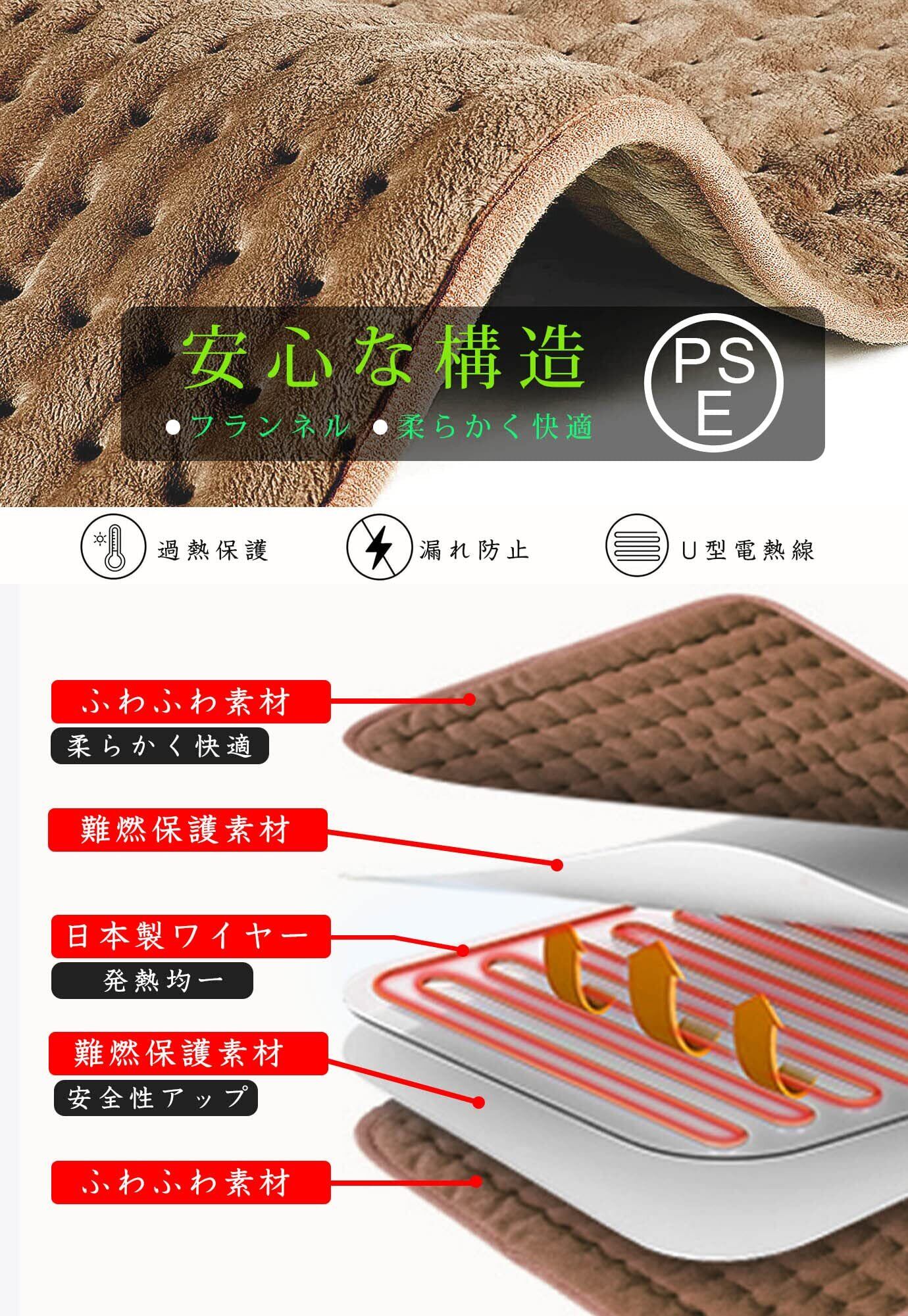 【 限定】電気ホットマット ミニ 一人用 ホットカーペット タイマー機能付き 過熱防止 電気毛布 敷きマット 在宅勤務 テレワーク ごろ寝 防寒対策 茶色 40*76cm
