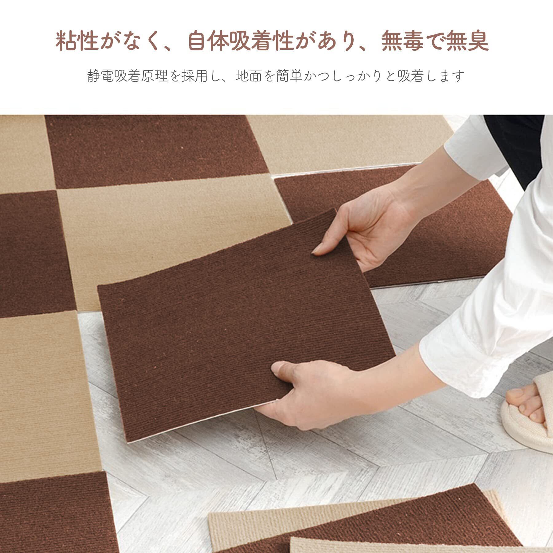 ATOKA タイルカーペット ジョイントマット タイルマット 吸着マット 大判【30*30cm*8枚】玄関 滑り止めマット カーペット 自宅/オフィス 床保護 防音 ハサミでカット可 洗える ペット/お年寄り 向けです 猫犬滑り止め対策 設置簡単(キャメルホワイト+オフホワイト) | kki