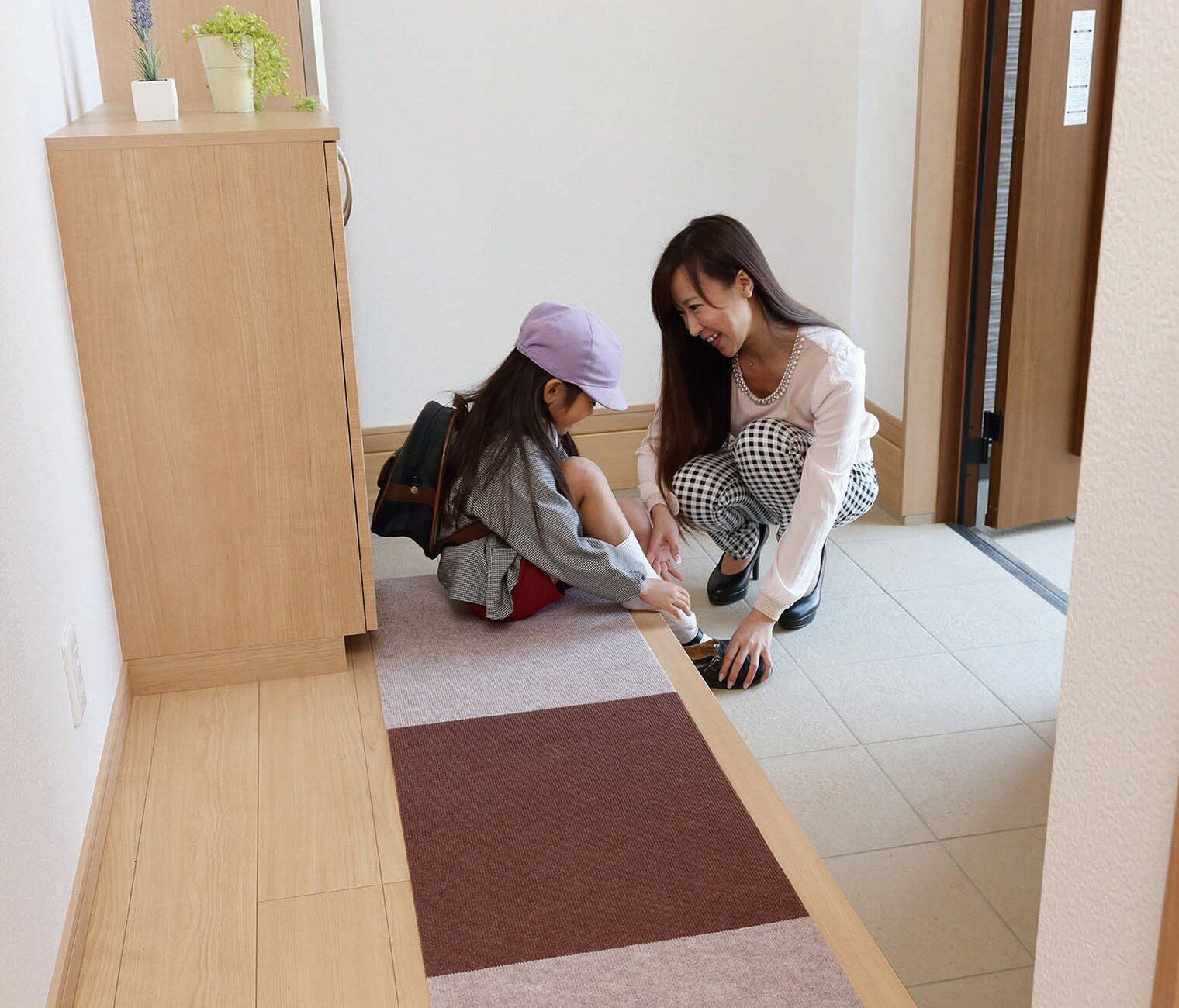フローリングだと爪がすべって歩きづらいペットも動きやすく。また、床面の汚れ防止にも活躍。