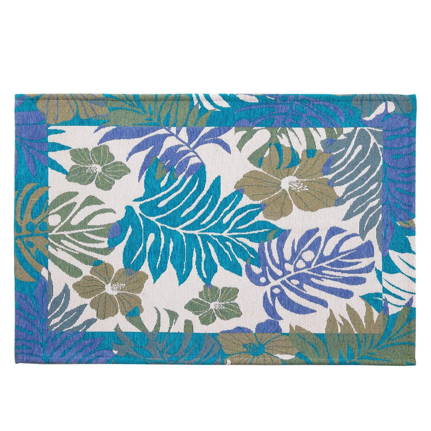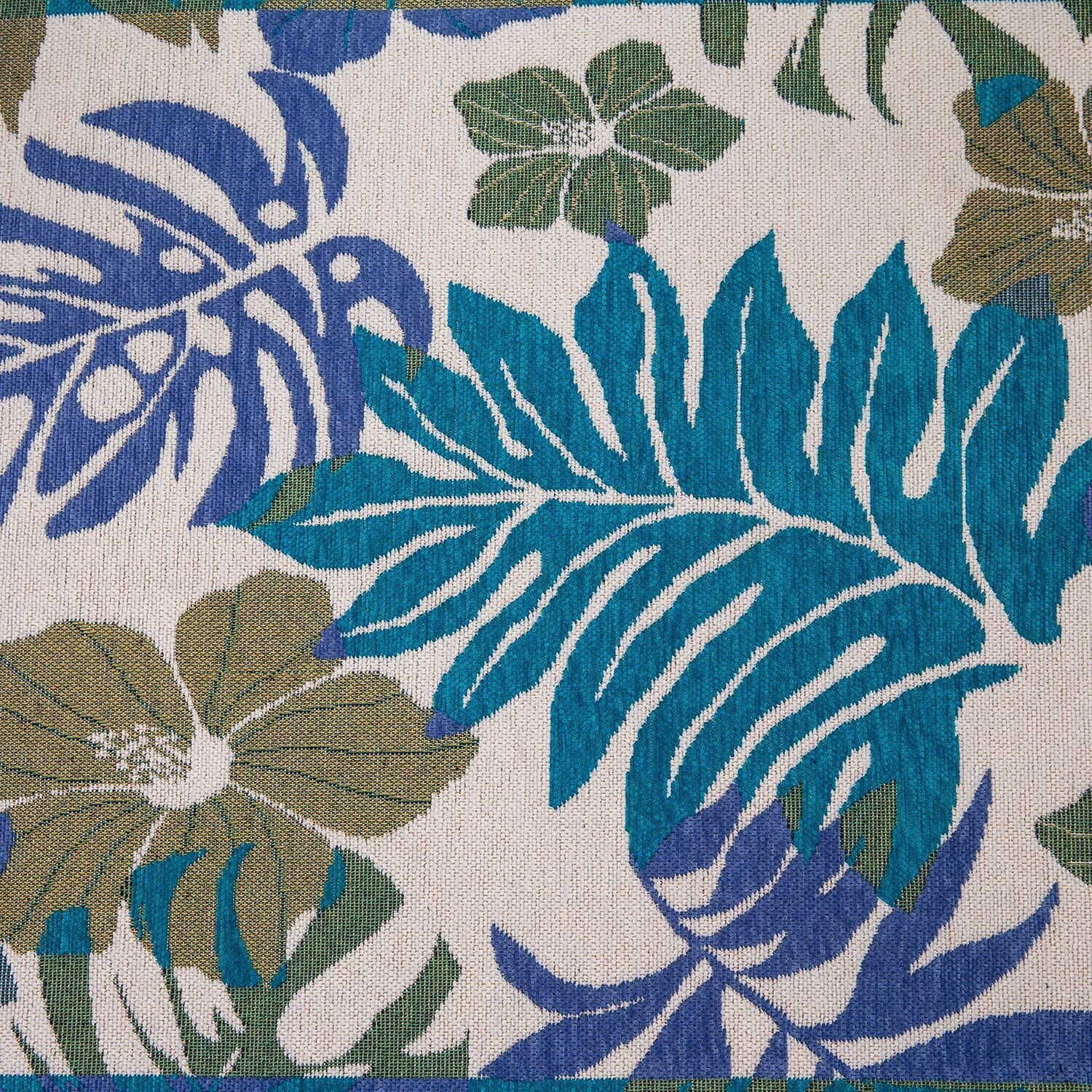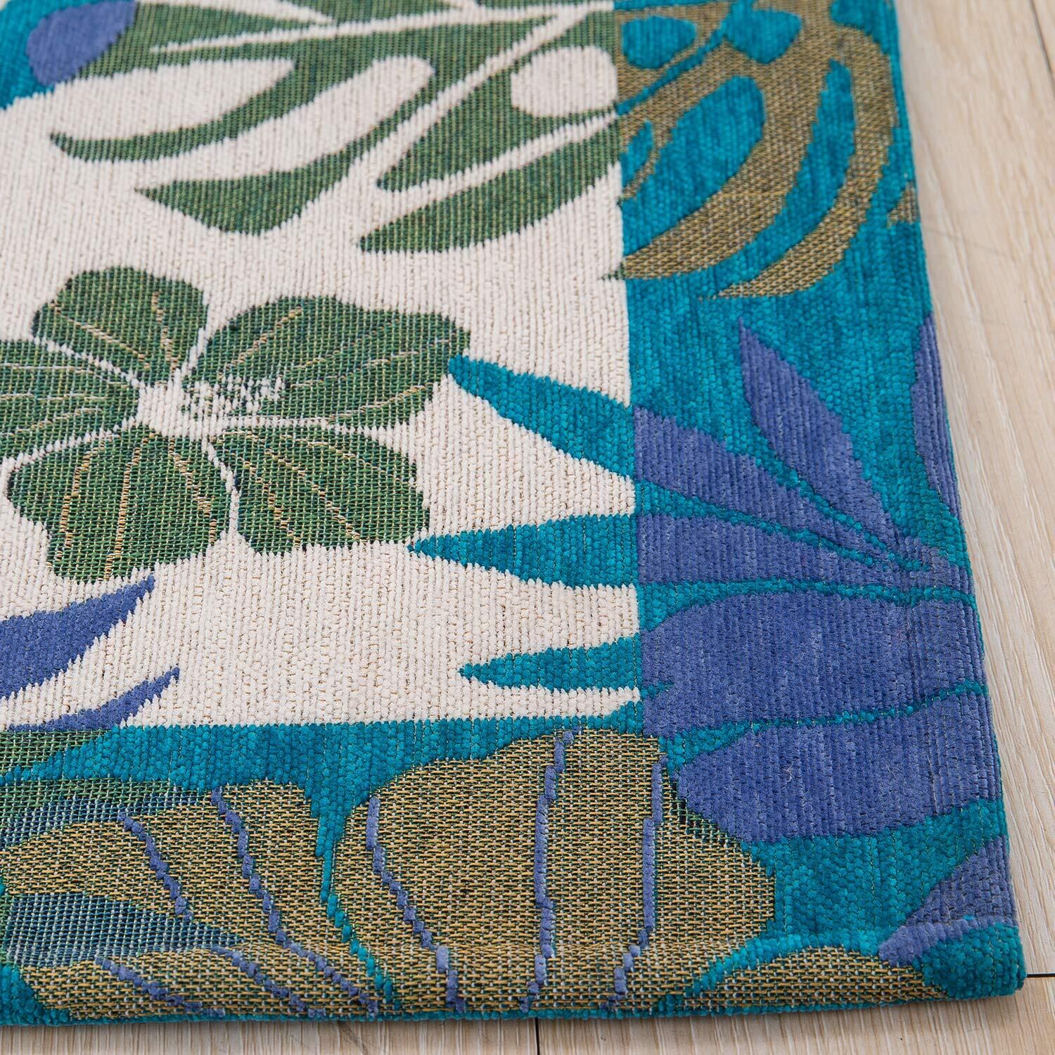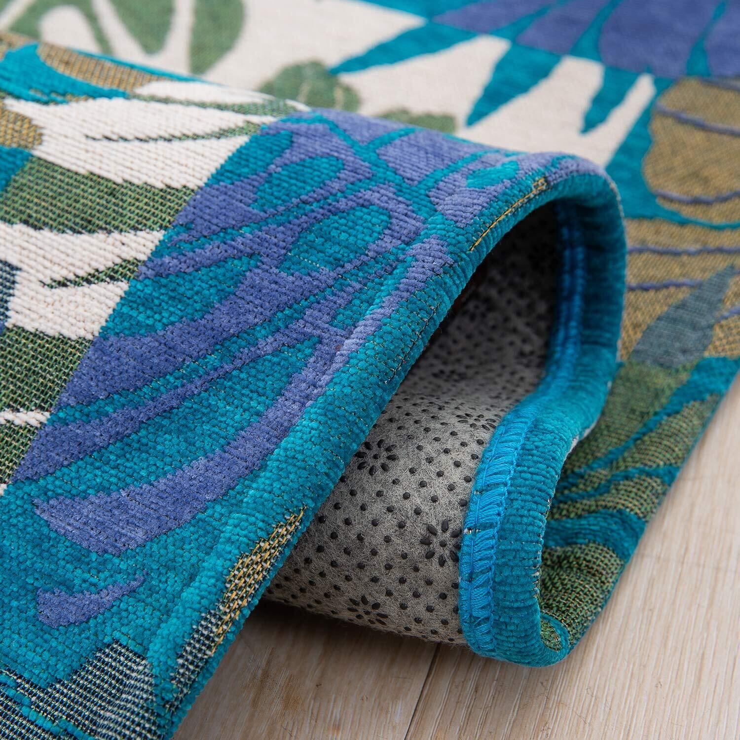 INSIMAN 玄関マット カーペット 屋内 ドアマット 泥落としマット 華やか おしゃれ - リーフ モンステラ柄 ブルー 洗える 吸水 速乾 夏用 - 50 x 80 cm ゴブラン織り 耐磨耗性 抗菌防臭 滑り止め 屋外 床暖房対応 オールシーズン適用 | kki