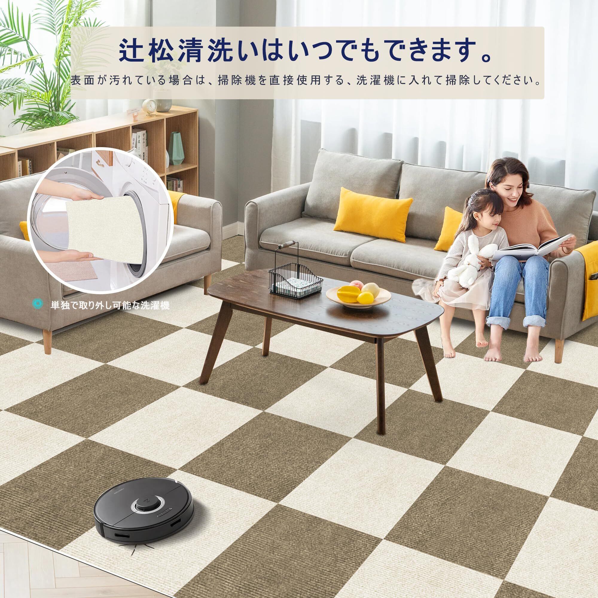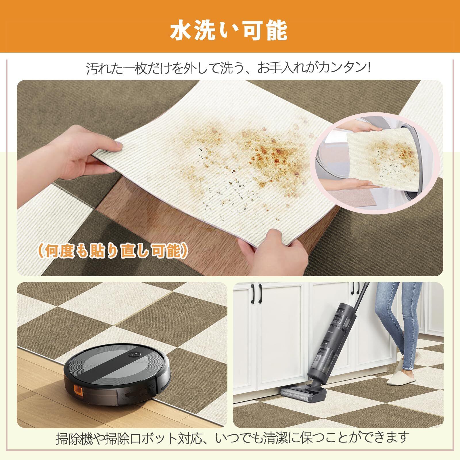 【水洗い対応】 お掃除もラクラク、軽く洗濯すれば、繰り返しお使いいただけます。 ・【床の傷・汚れ防止】床の傷、汚れ防止にぴったりで、汚れた部分だけ取り外し、簡単にお部屋のイメージを変えることができます。