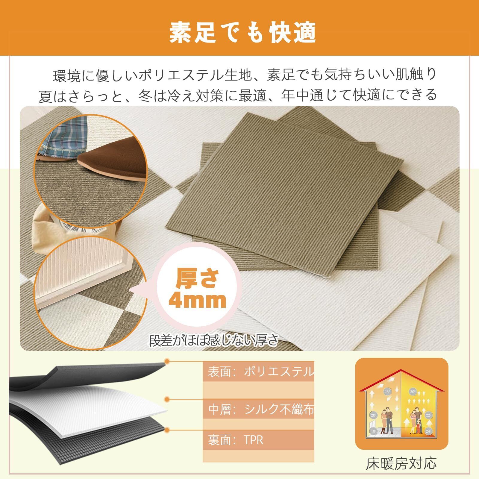 【 限定ブランド】タイルカーペット ジョイント マット 【30x30cm 厚さ4mm】 40枚 フローリング HDMOD タイルカーペット大判 吸着マット 防音 カーペット 滑り止めマット 床の保護と装飾 ずれない タイル フローリング カーペット ペット(モカ&オフホワイト) | kki