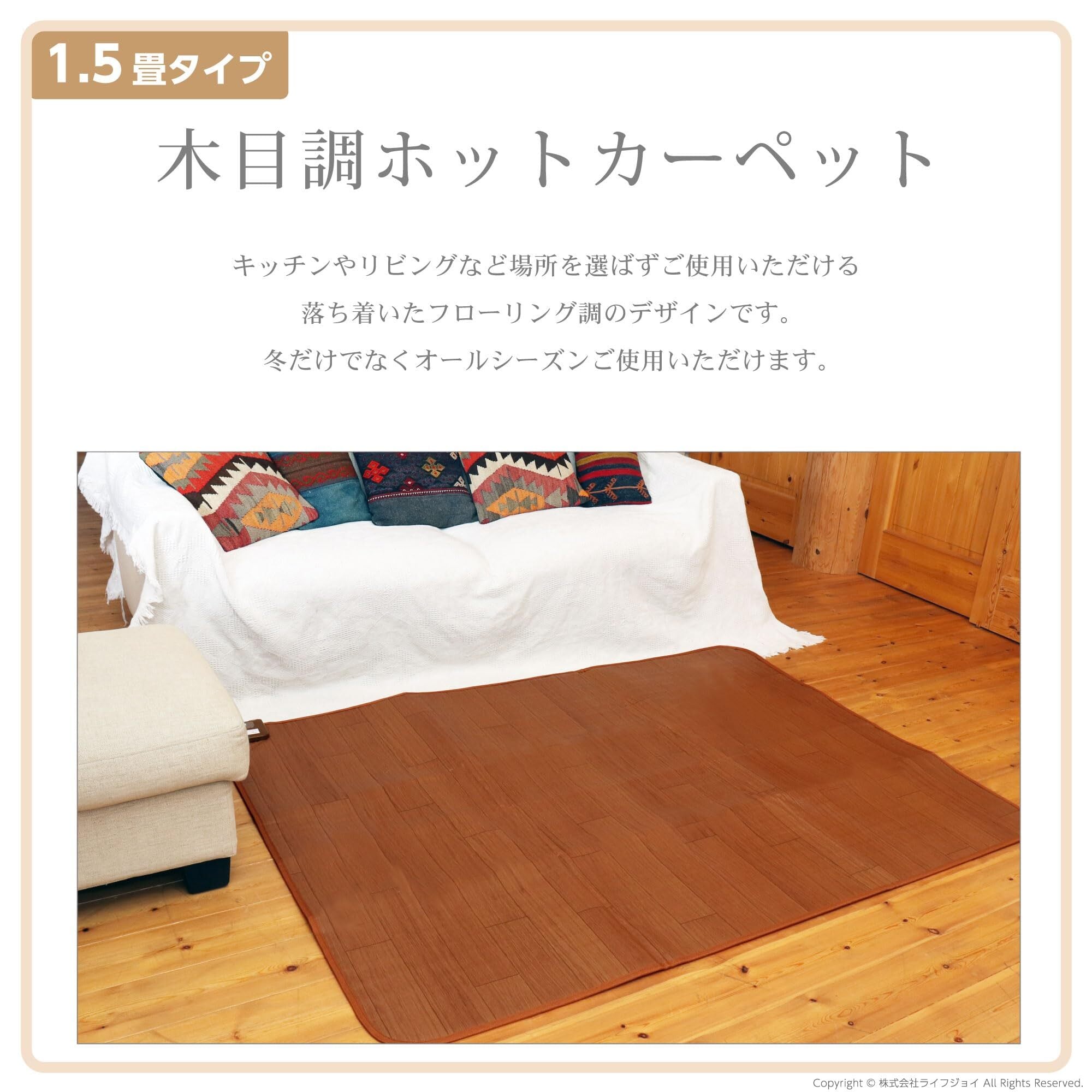 ライフジョイ ホットカーペット 1.5畳 フローリング調 電気カーペット 128cm×176cm 防水 ブラウン JPJ151WB