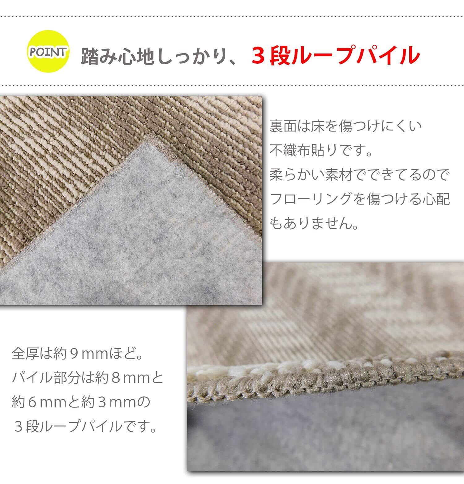 【商品詳細】組成:表地 ポリプロピレン100%、 裏:不織布貼り、 生産国:日本製、 ループパイル、 梱包:折りたたみ、 機能:抗菌・防ダニ基布使用